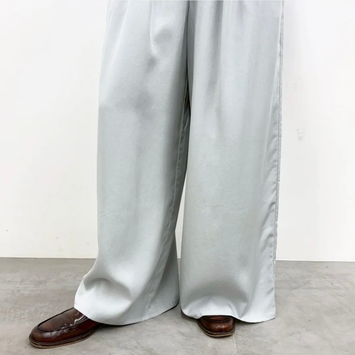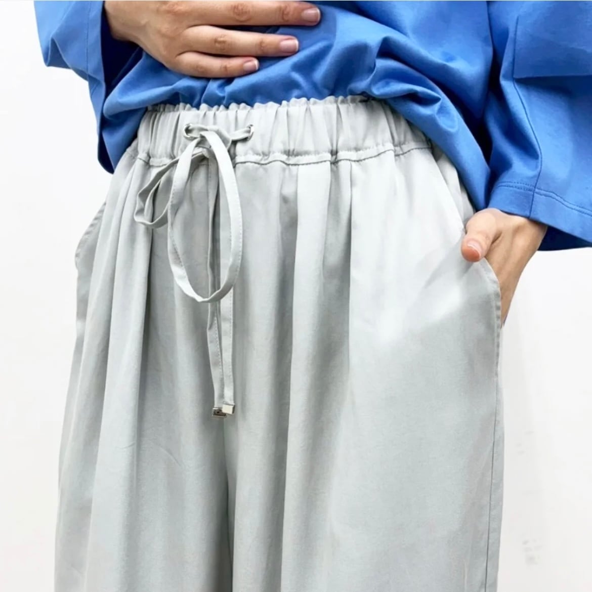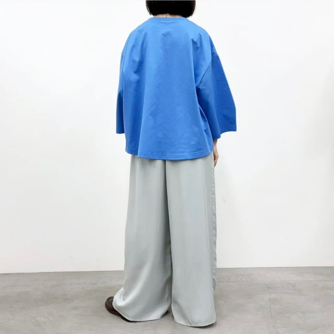 ワイドシルエットながら落ち感があり、すっきりとキレイ見えする1枚。