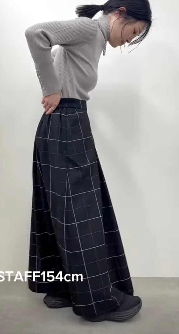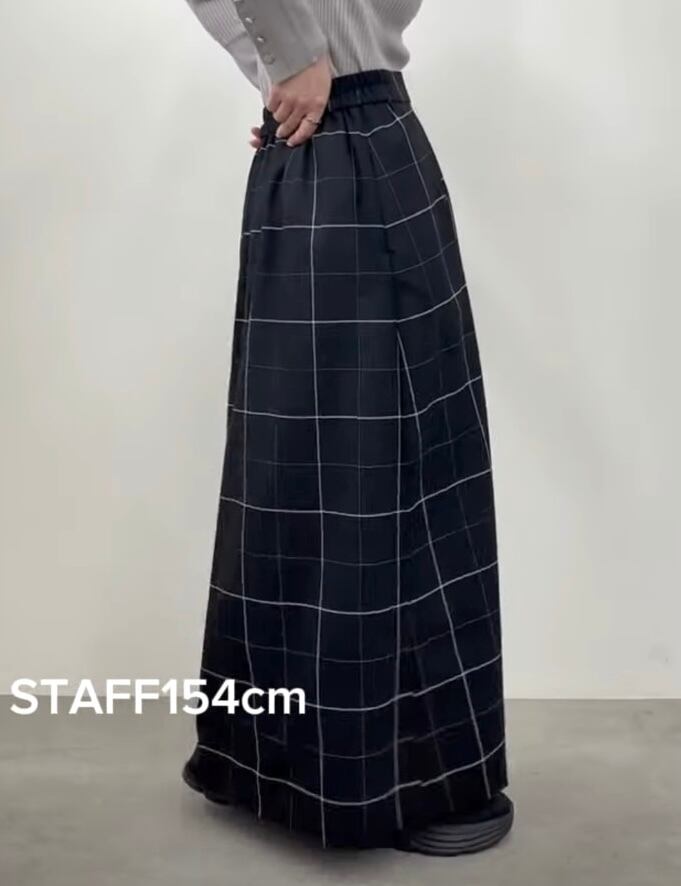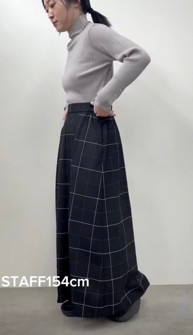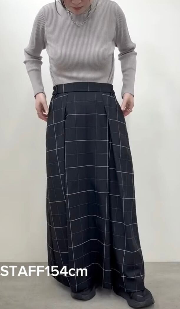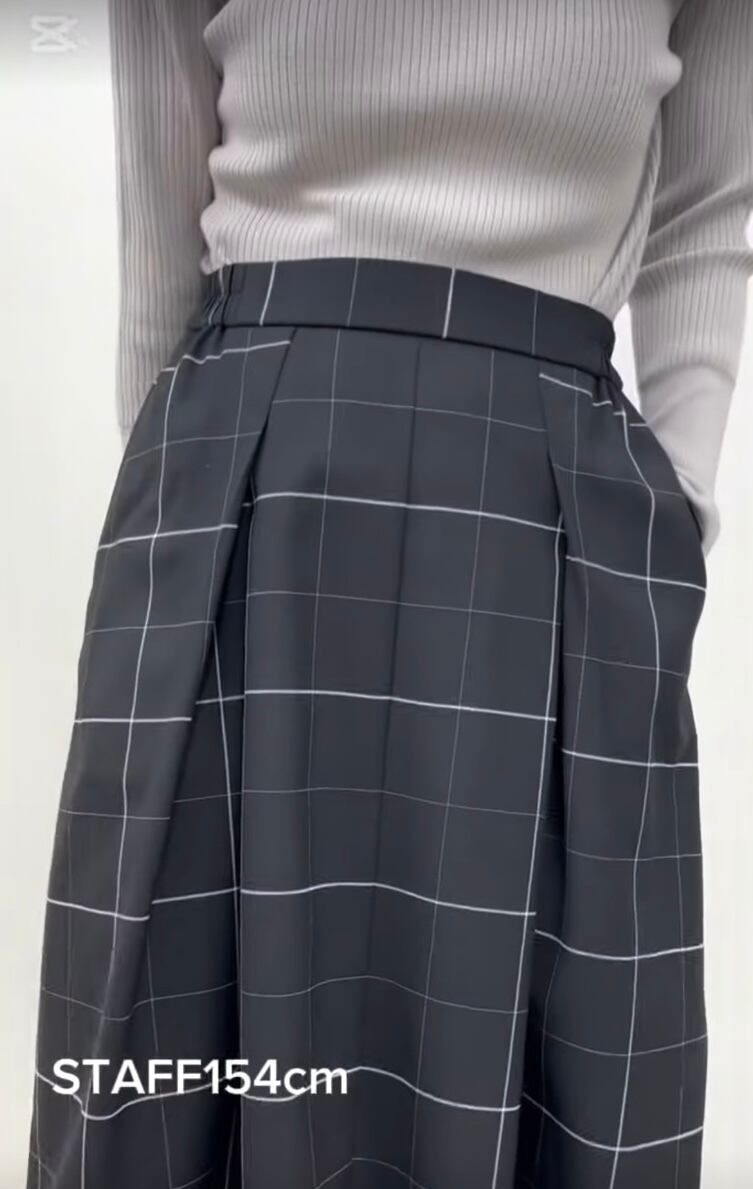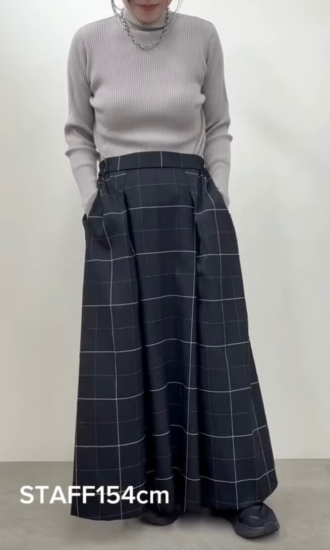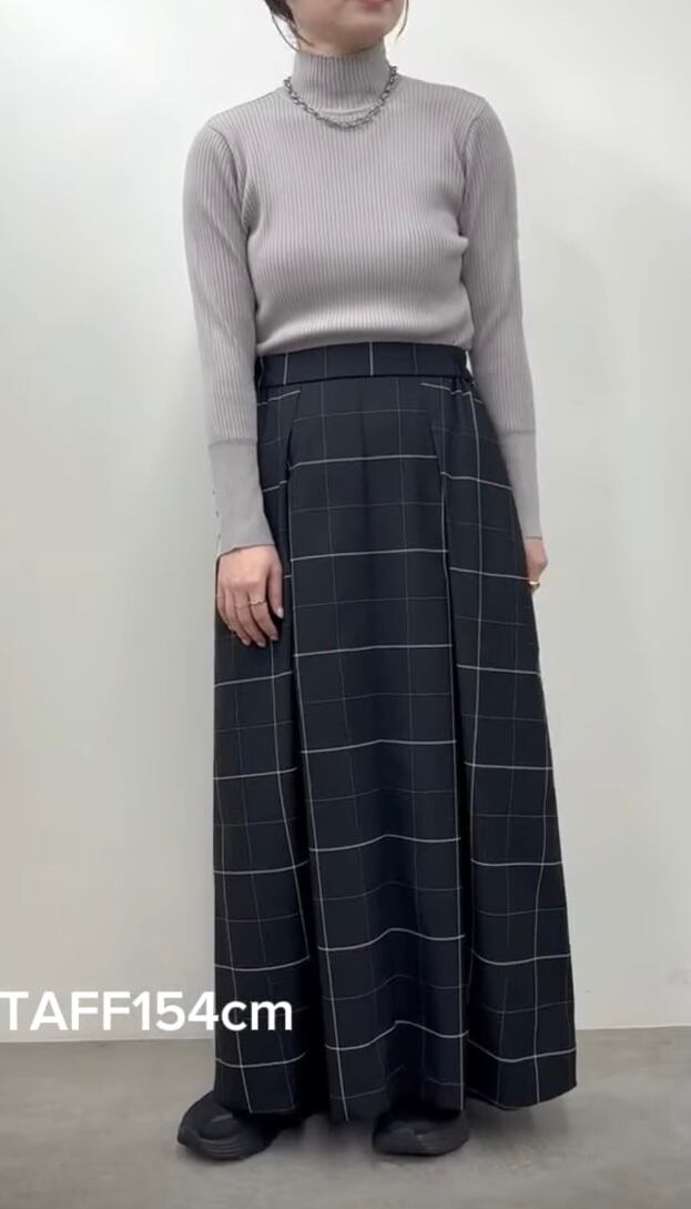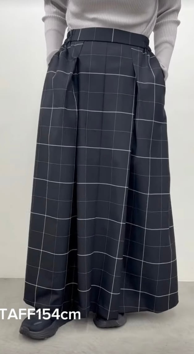 ボックスプリーツで広がり過ぎないAラインになり、ボリュームのあるトップスとも好相性です。