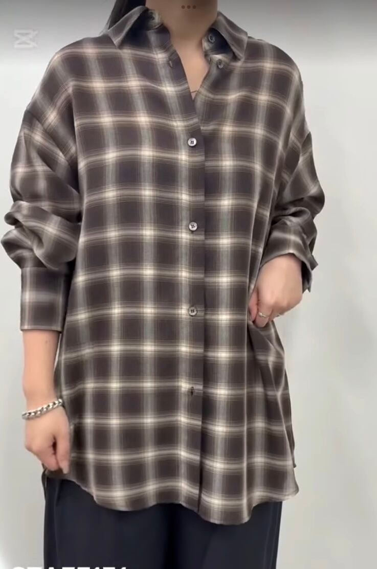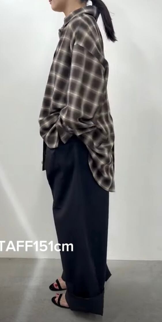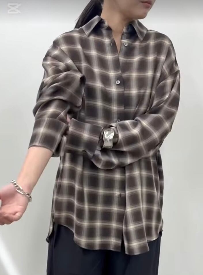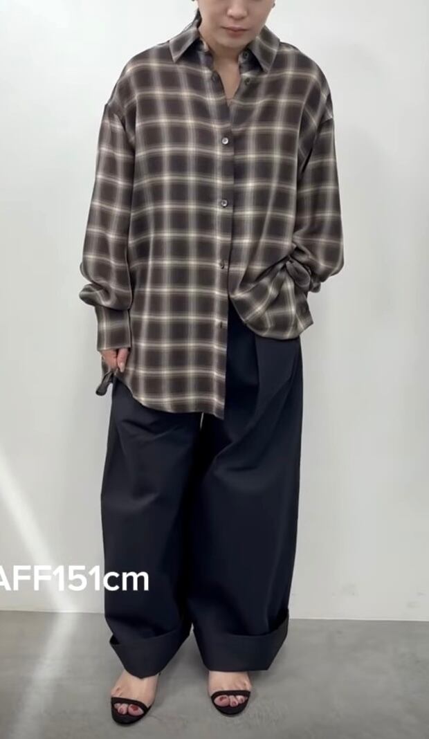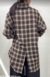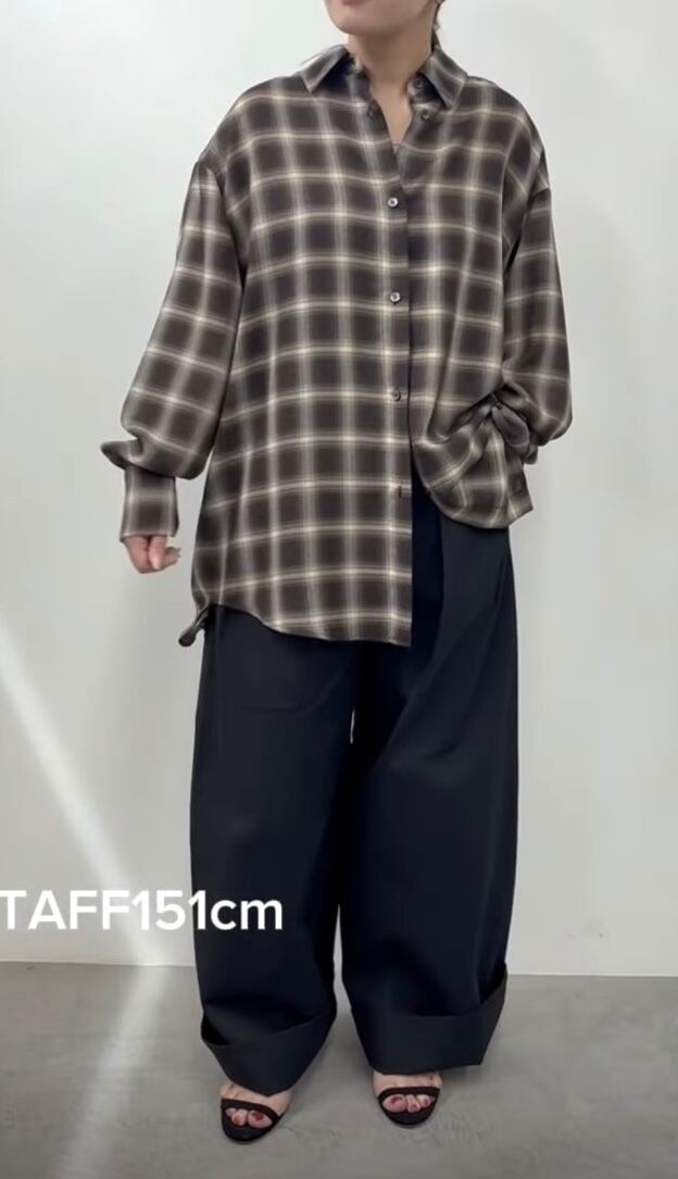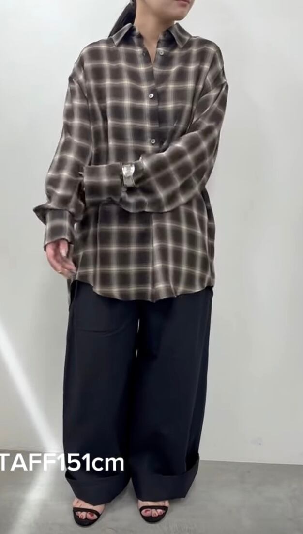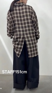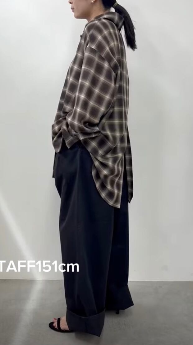 サラサラとした薄めの生地で、後ろにスリットが入っていたりと、大人上品に着れるシャツです。
