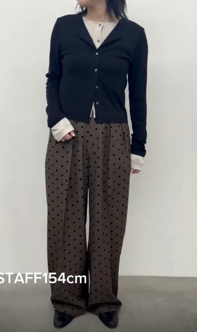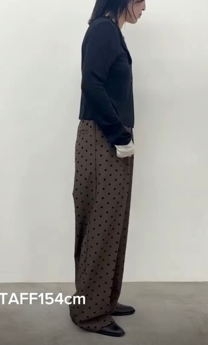 コンパクトなサイズ感なのでワイドパンツやスカート合わせがおすすめです。