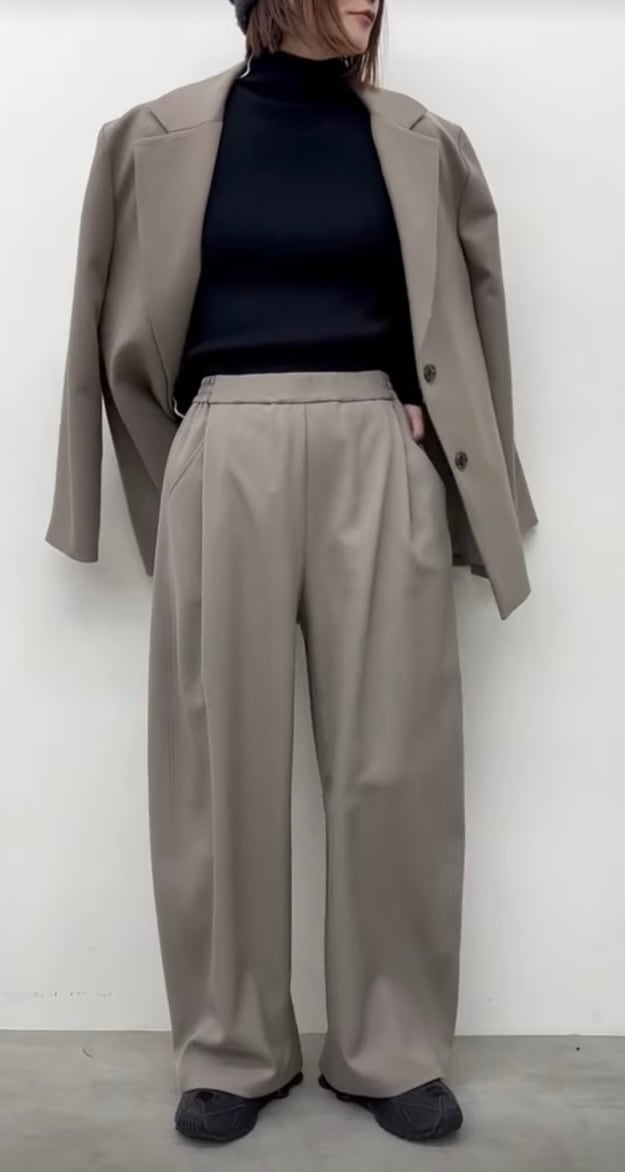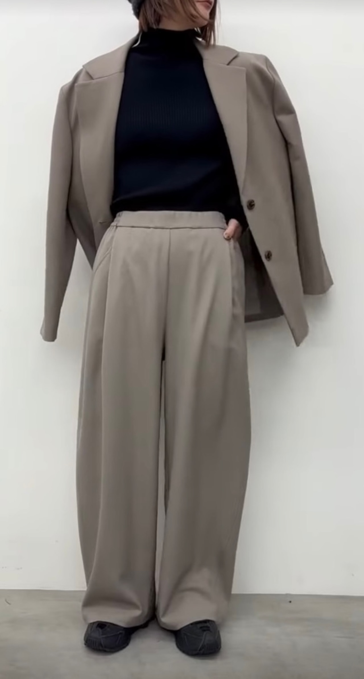 ワイドシルエットなのでトップスインやショート丈のトップスとの相性も良い1枚です。