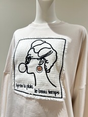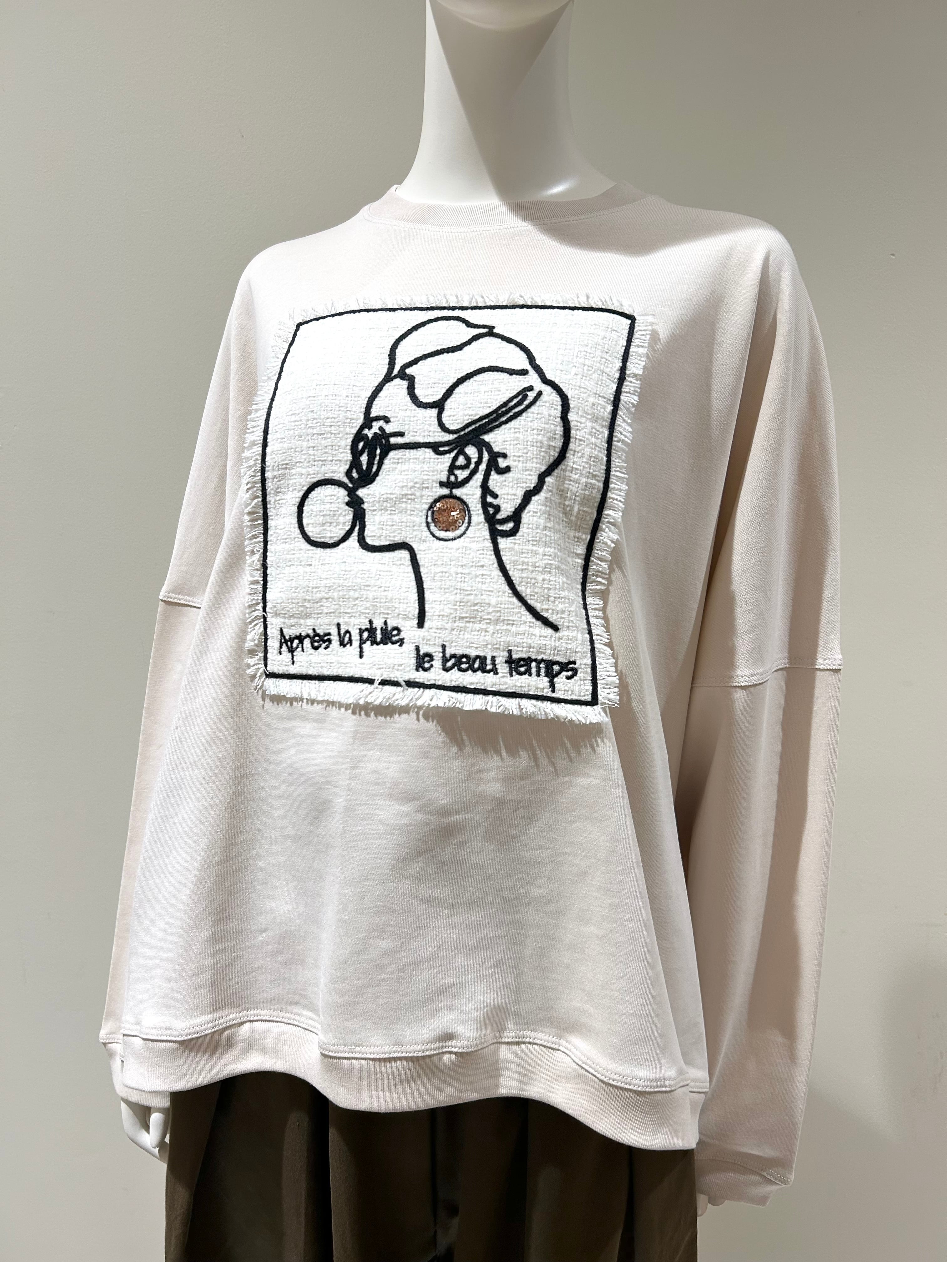 スパンコール・刺繍・ツイードパッチデザインが目をひくロングカットソー。