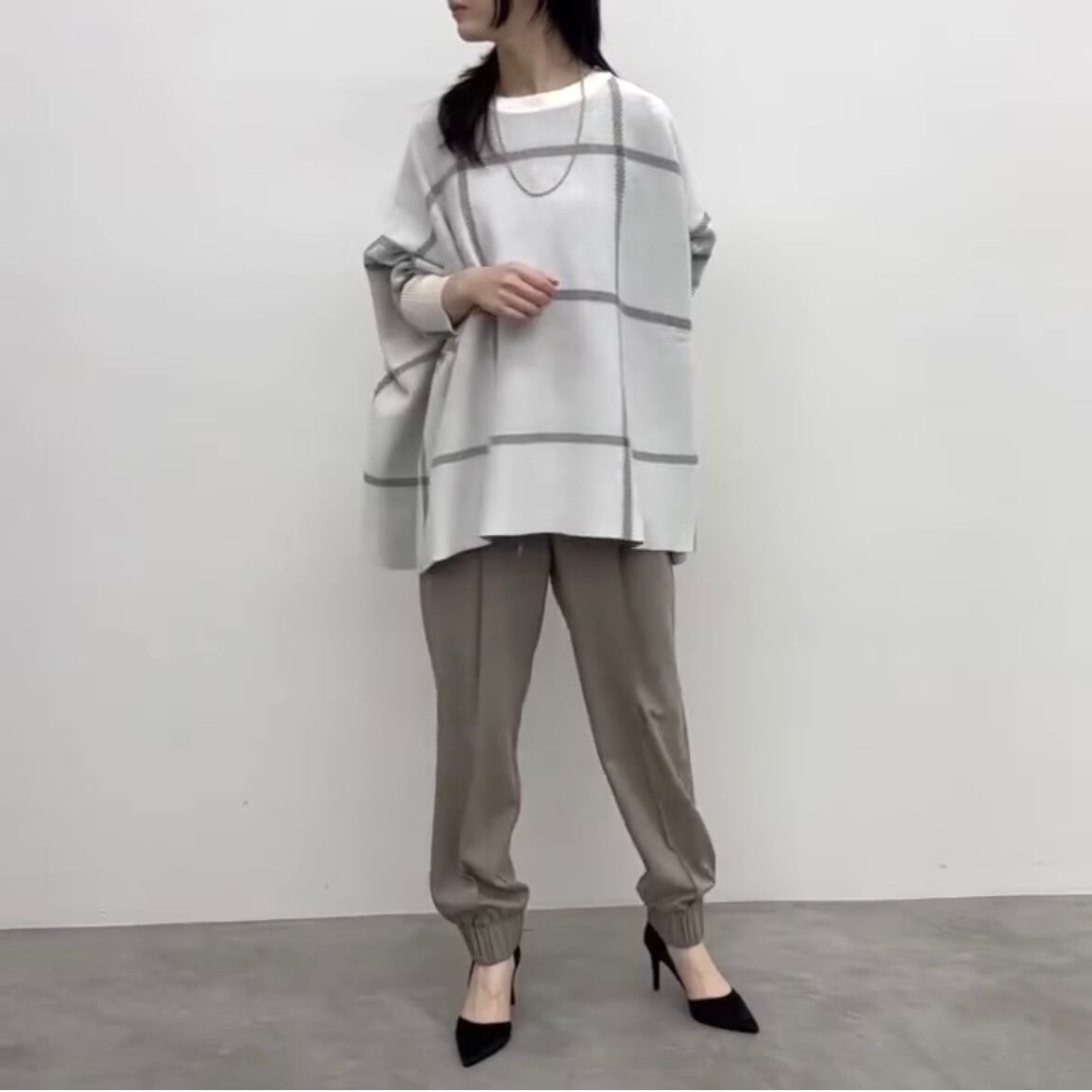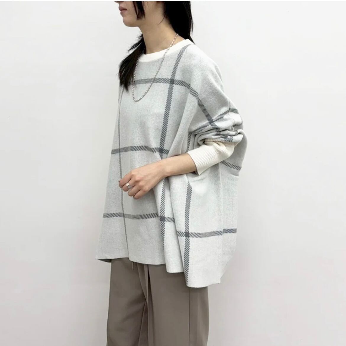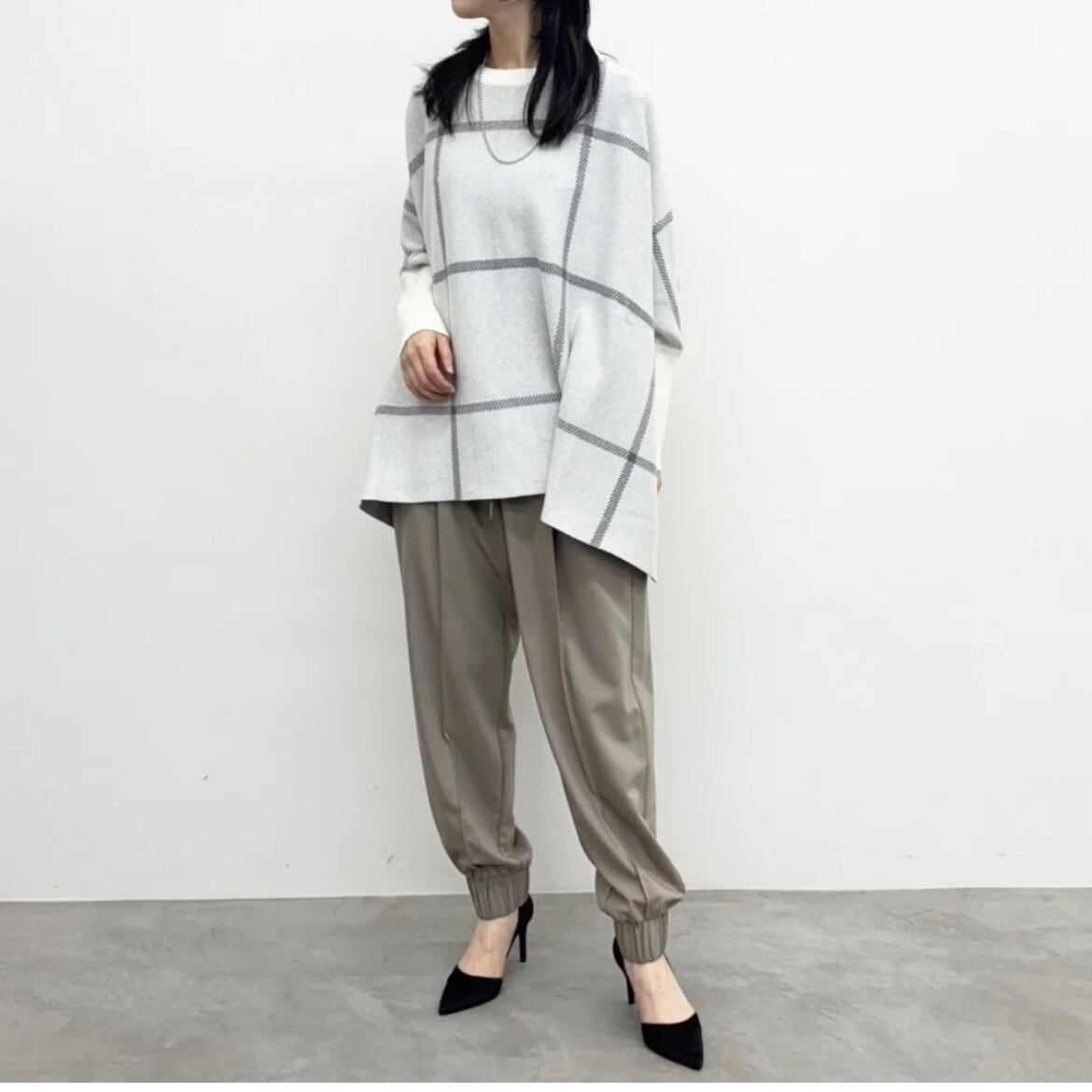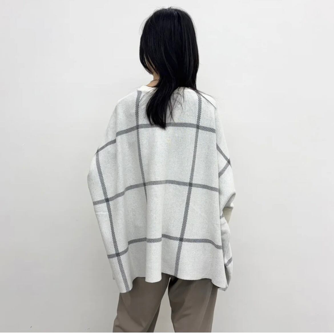 カジュアルスタイルを格上げしてくれるポンチョニット。