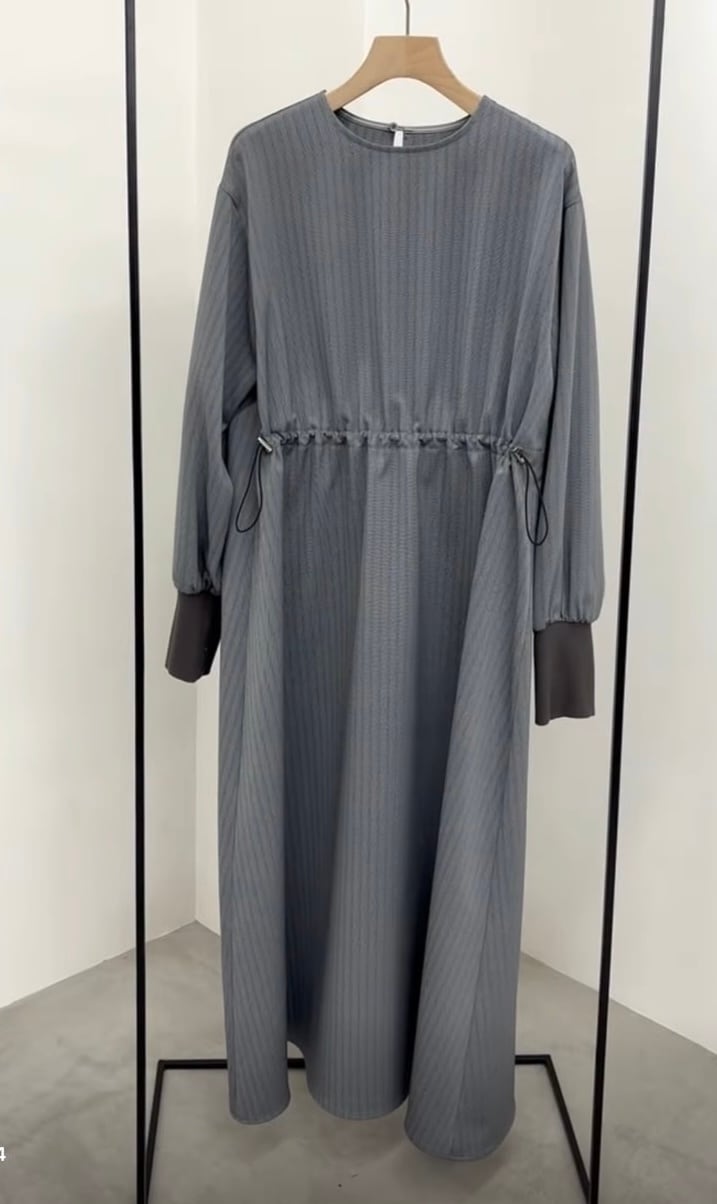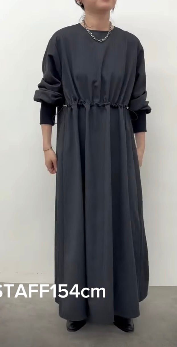 ウエストのドローコードでシルエットを自由自在にアレンジできるワンピース。