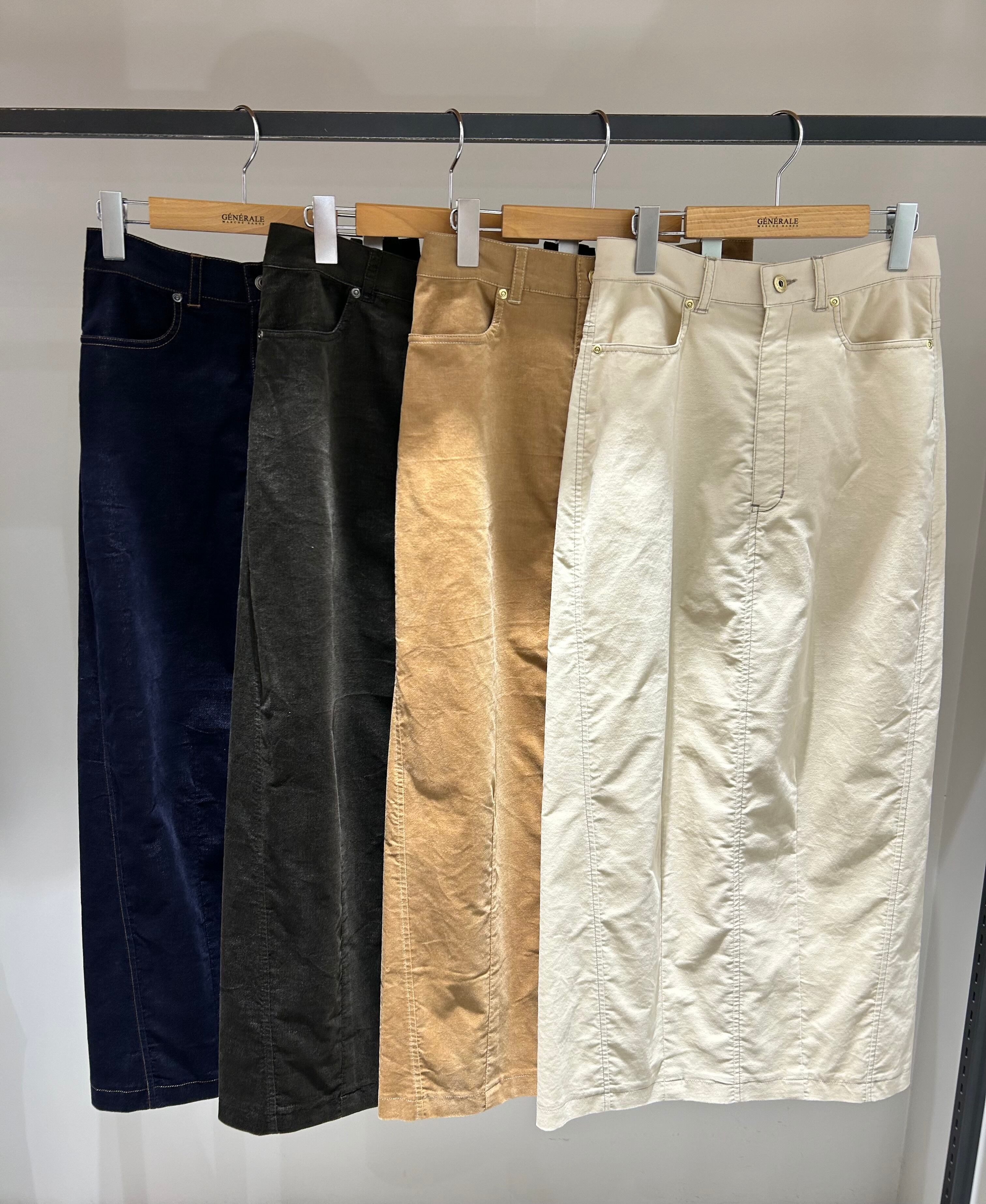 デニムライクに仕上げられた絶妙な光沢感とストレッチ性に優れた別珍生地。