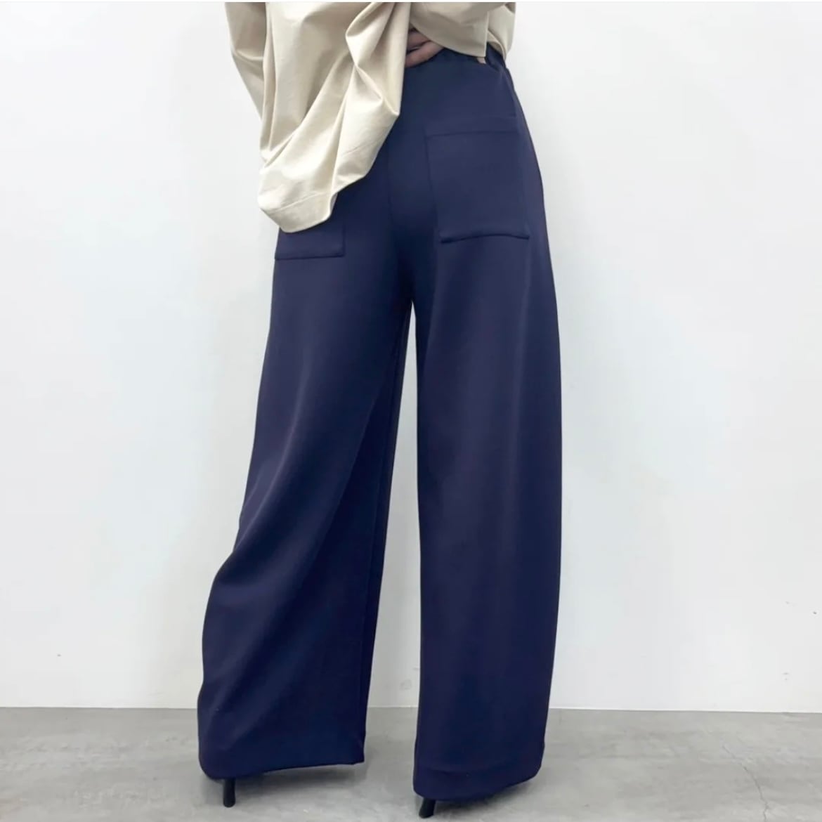 キレイめなニットやブラウスと合わせたオフィスコーデからスウェットなど幅広いトップスに映えるアイテム。