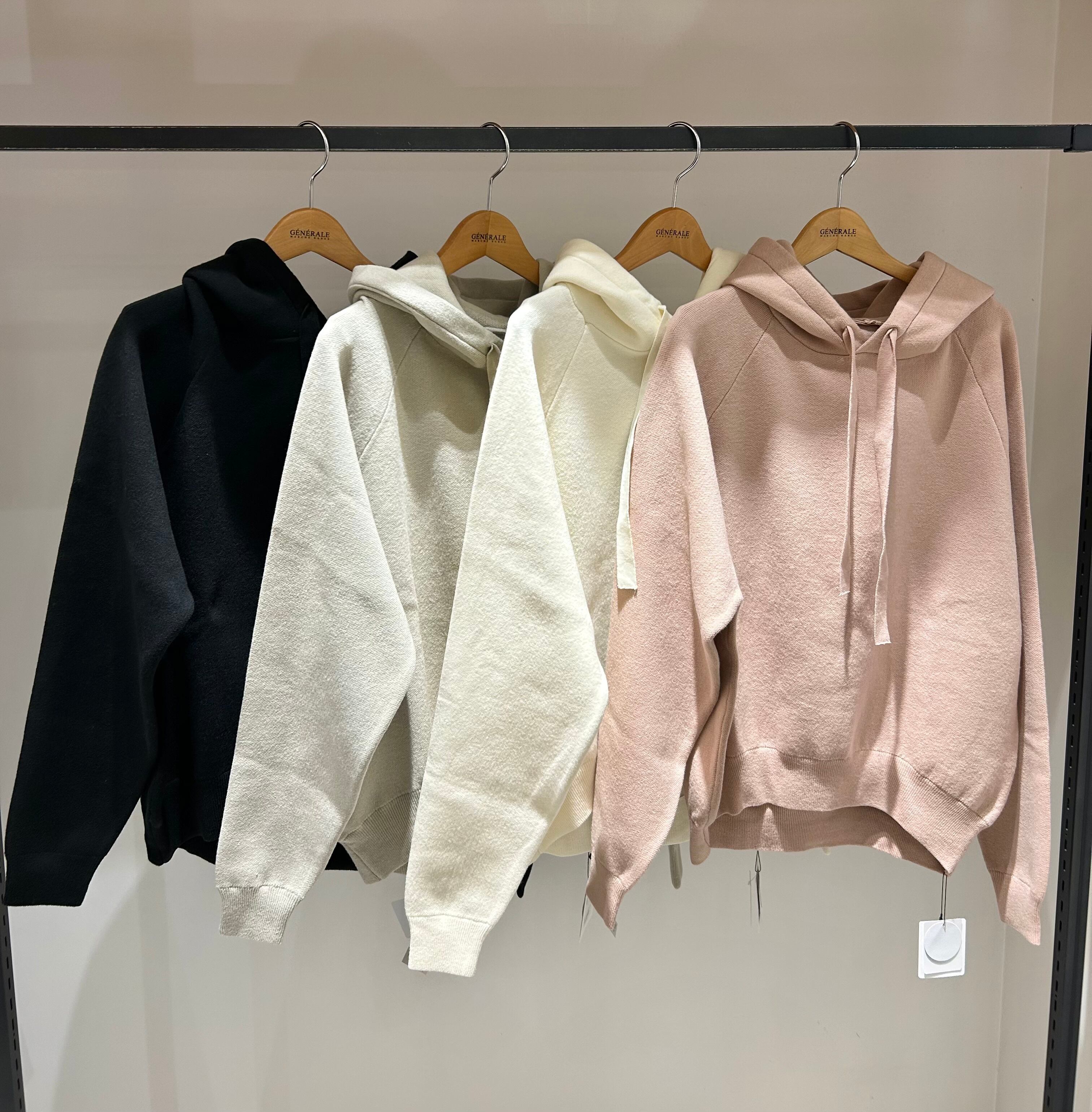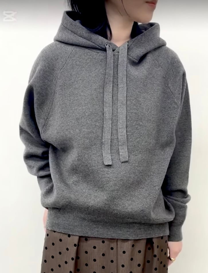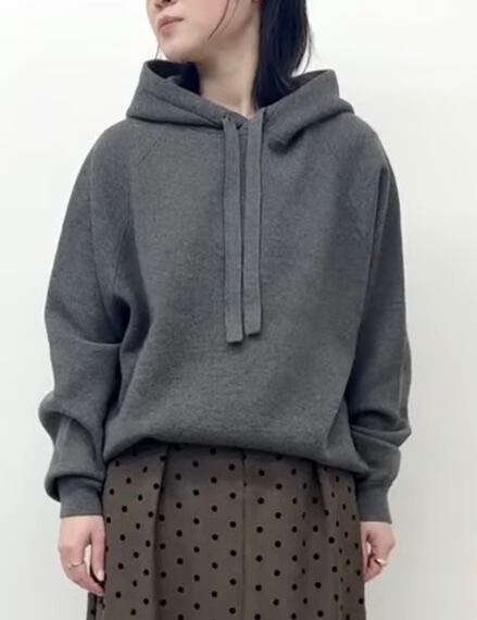 カジュアルなイメージのパーカーをニット素材で大人な印象に。