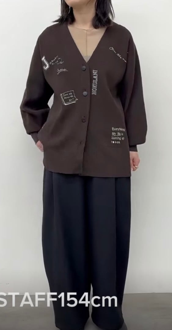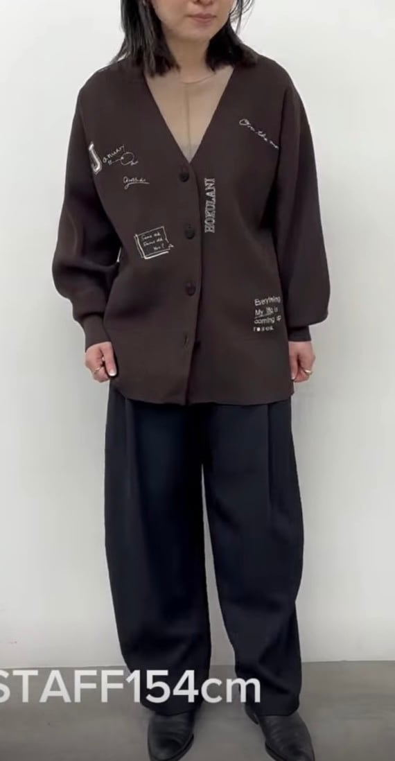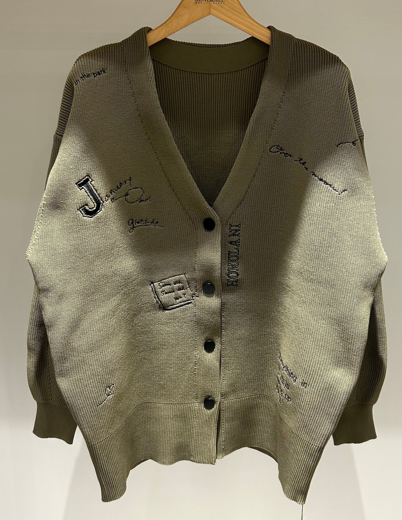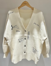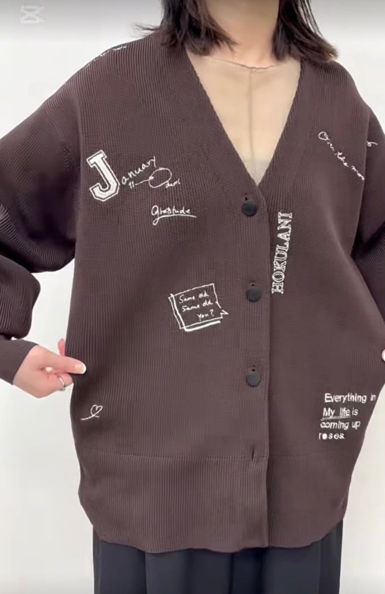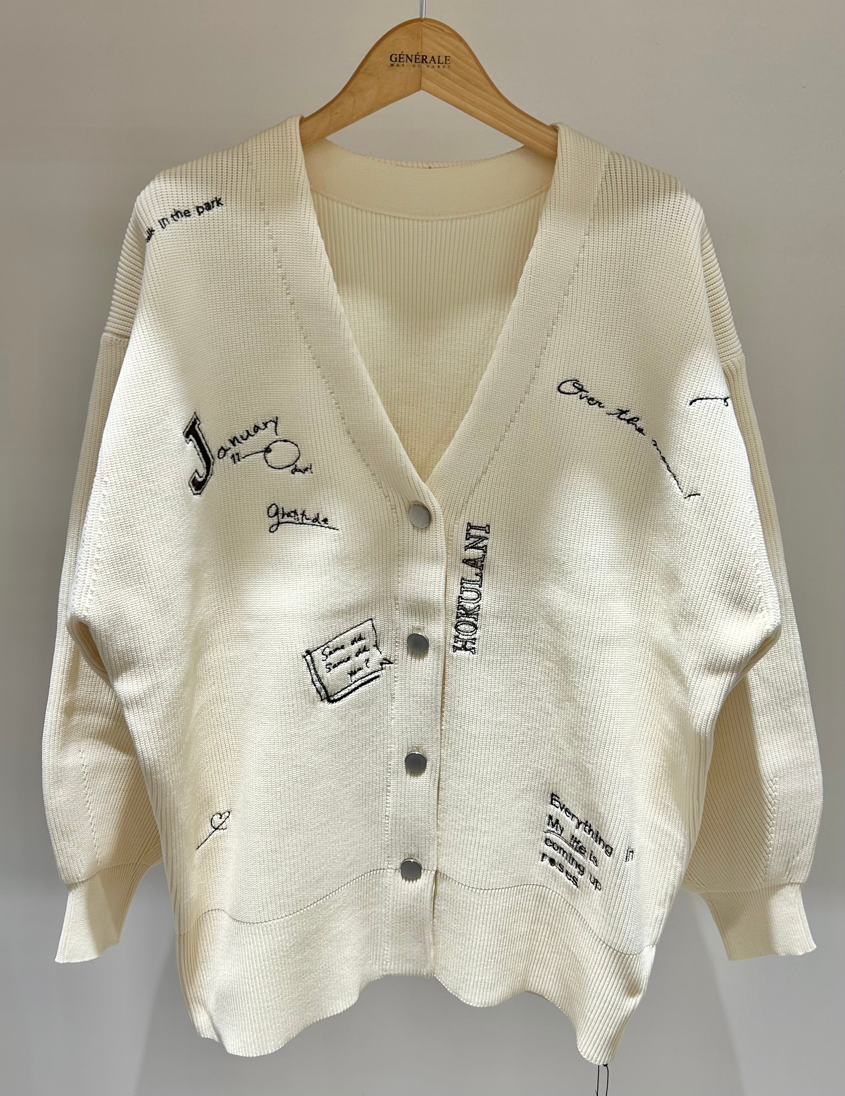 手書き風の刺繍ロゴが可愛いカーディガン。
