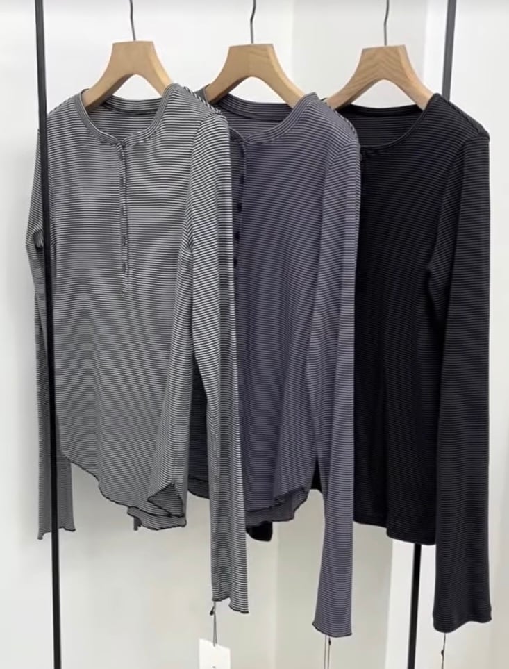 細ピッチボーダーでさり気ないアクセントにぴったりな1枚です。