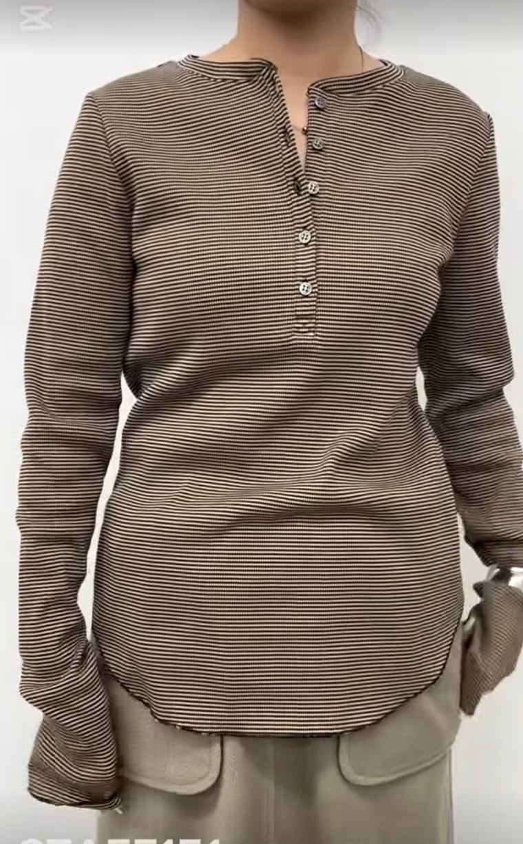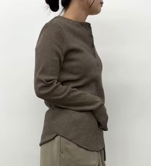 コンパクトなサイズ感が大人な印象のヘンリーネックカットソー。