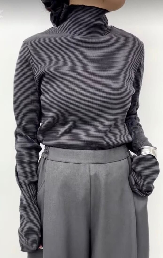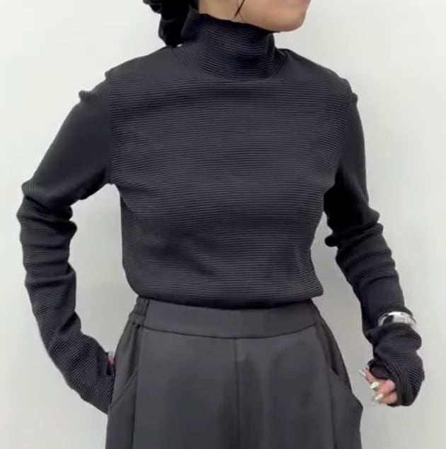 インナー使いでも1枚でも大活躍間違いなしのシンプルタートルネックカットソー。