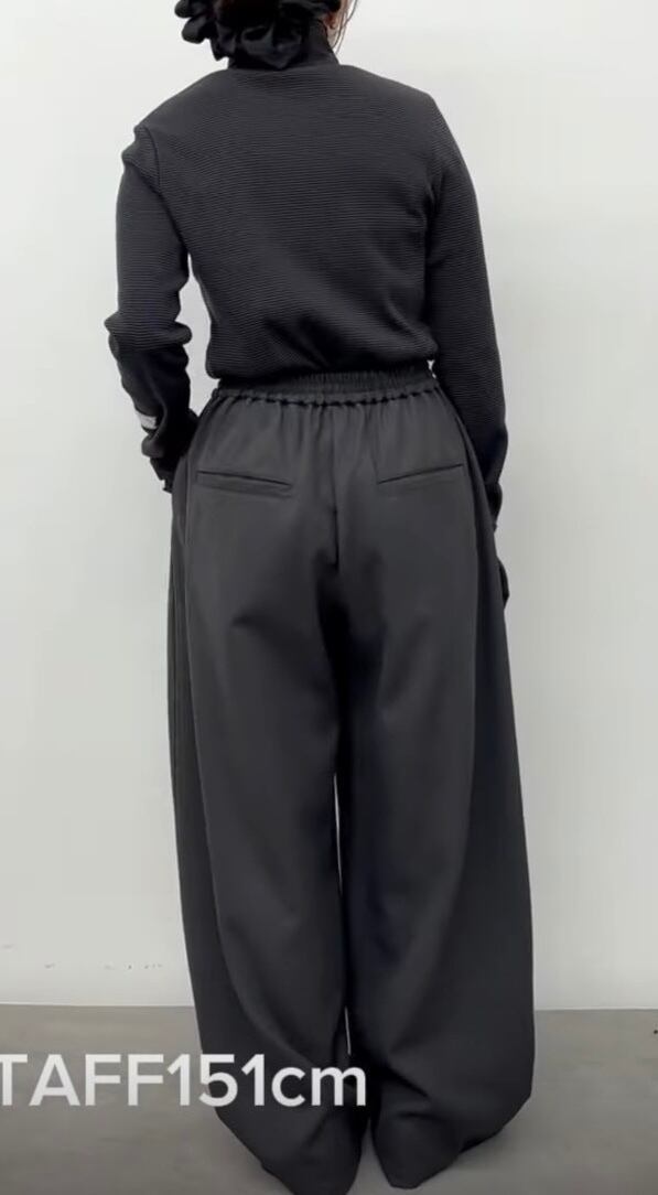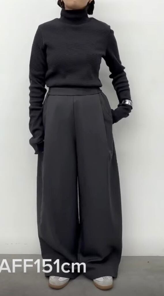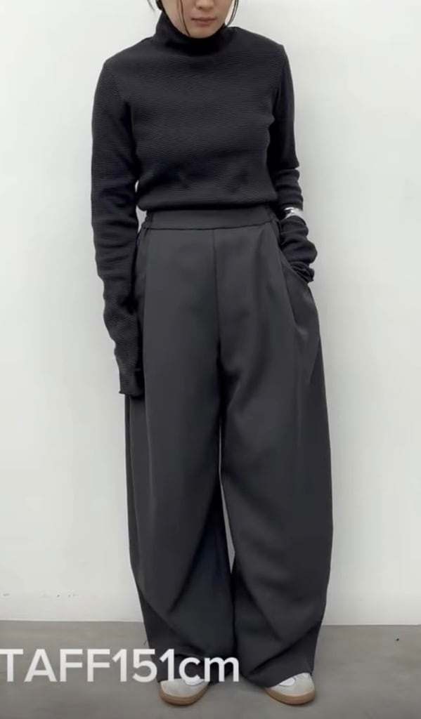 コンパクトなサイズ感なので太めのデニムやフレアスカートなど下半身にボリュームを出すのがおすすめ。