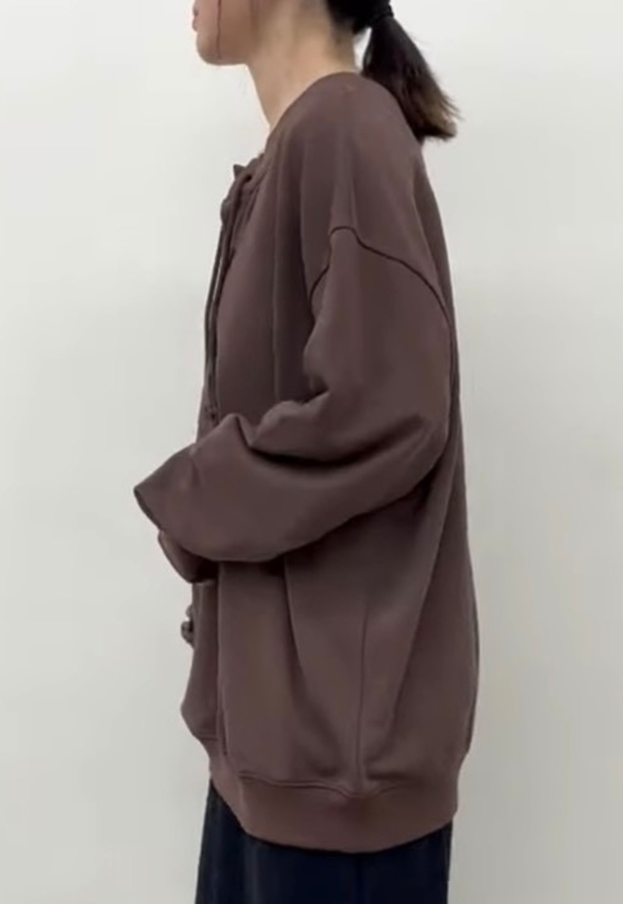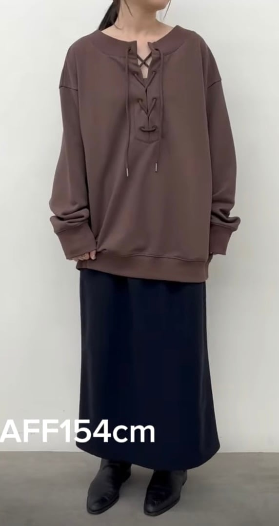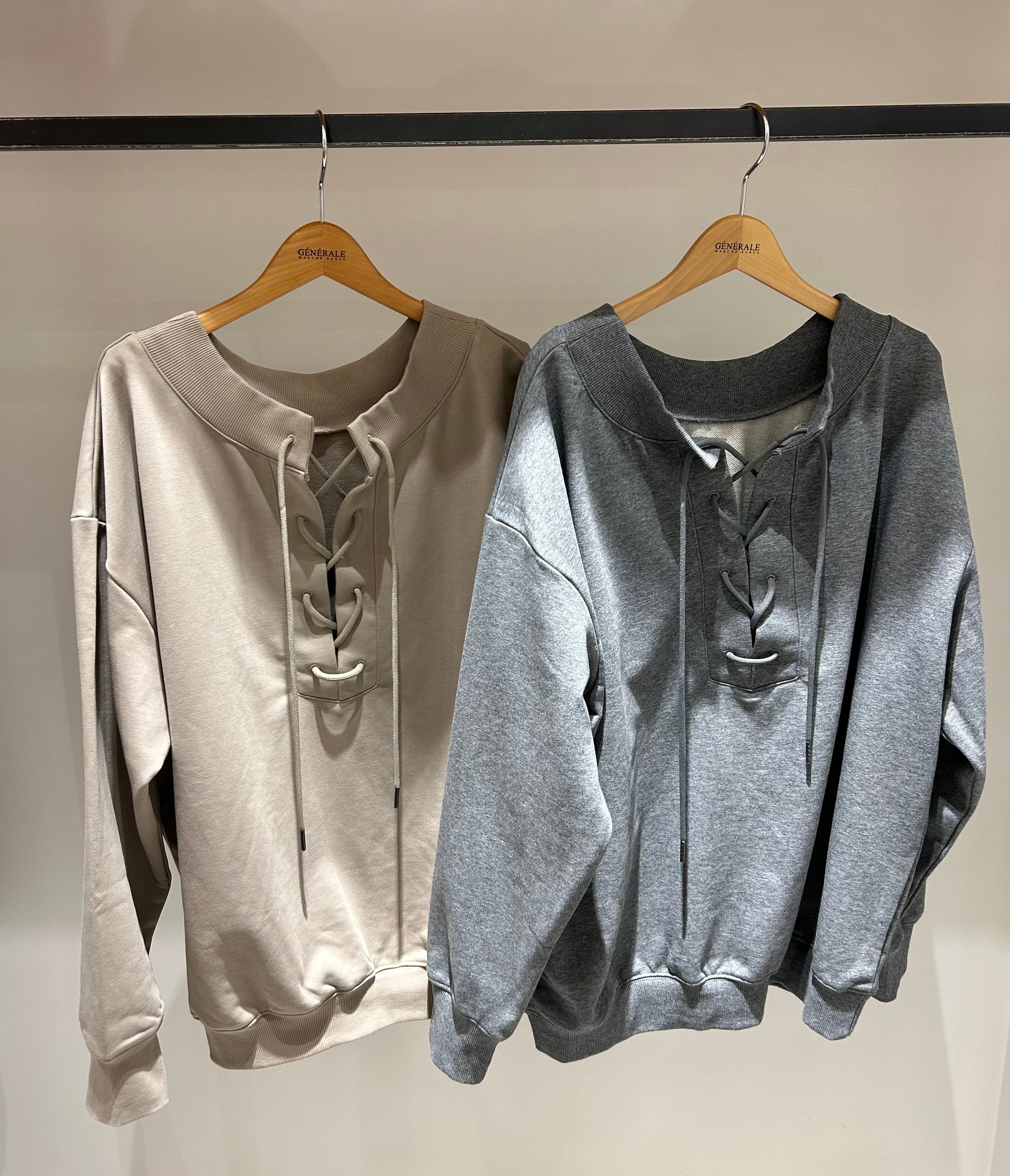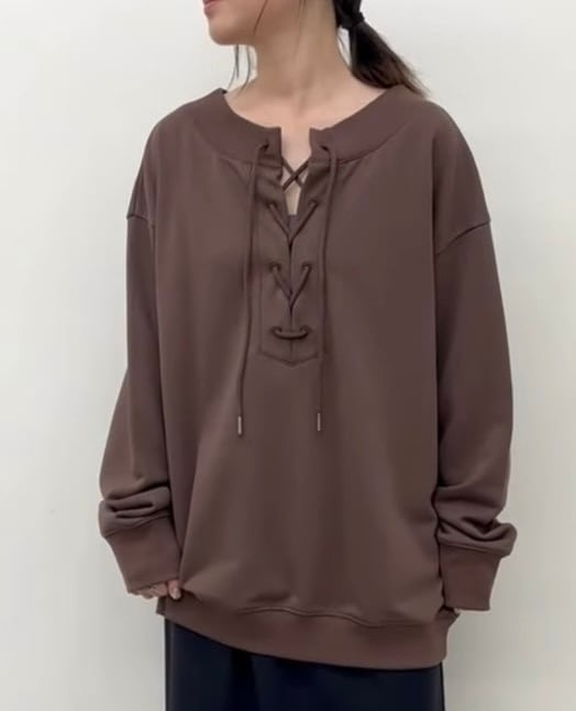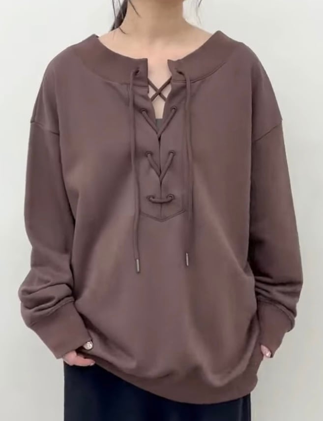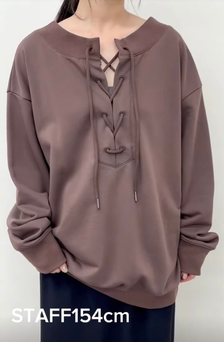 フロントのレースアップが女性らしいスウェットプルオーバー。