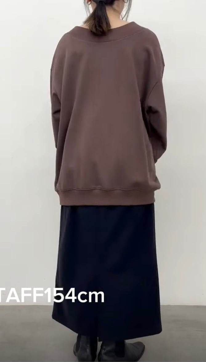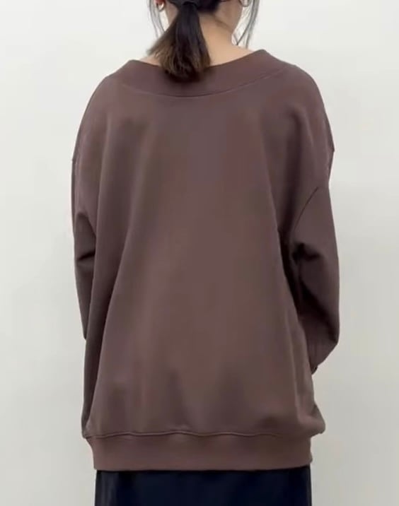 ルーズなシルエットで抜け感があり首まわりもスッキリ見えするデザイン。