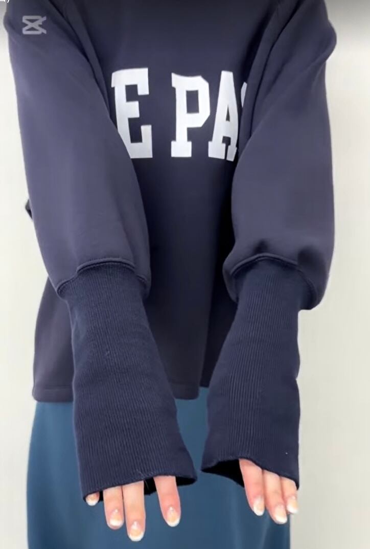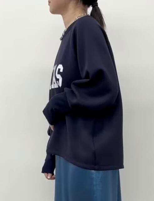 身幅がゆったりとしたラグランスリーブと長めに設定された袖口リブがポイント‼︎