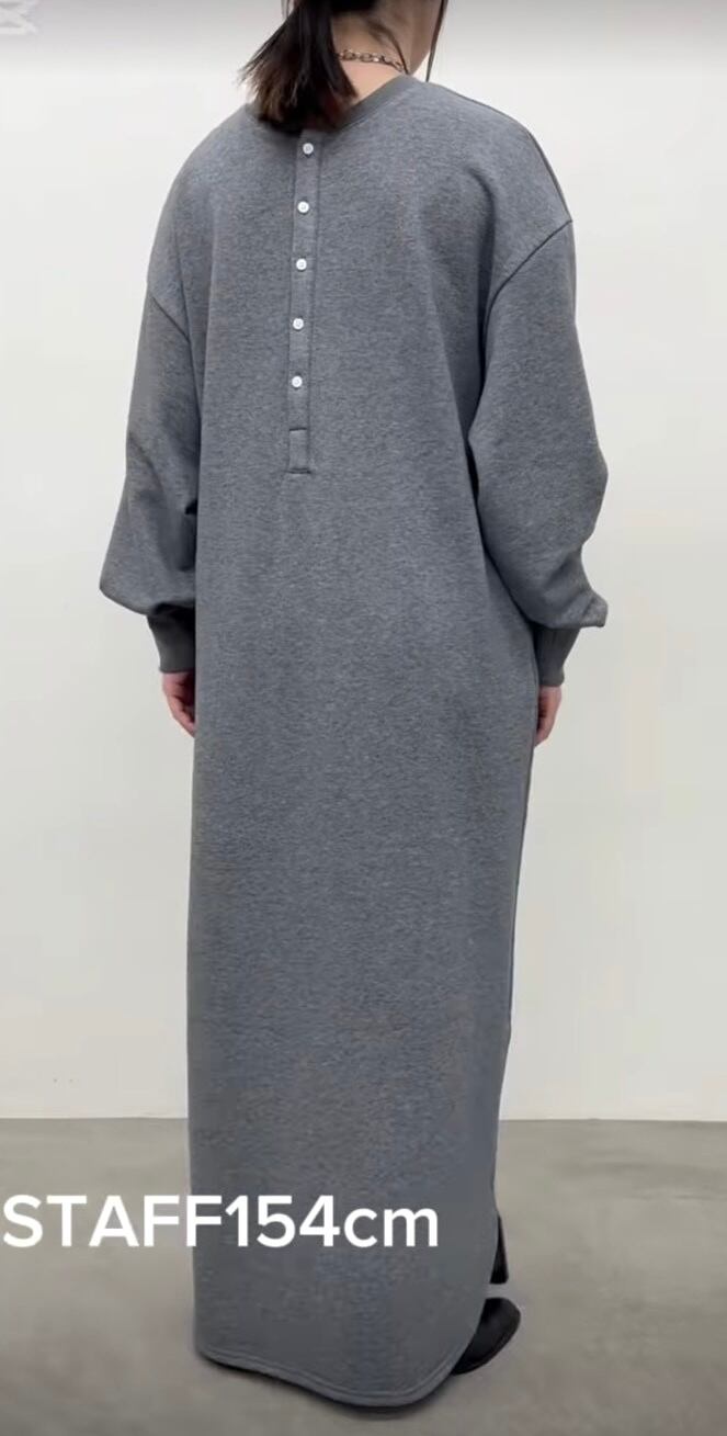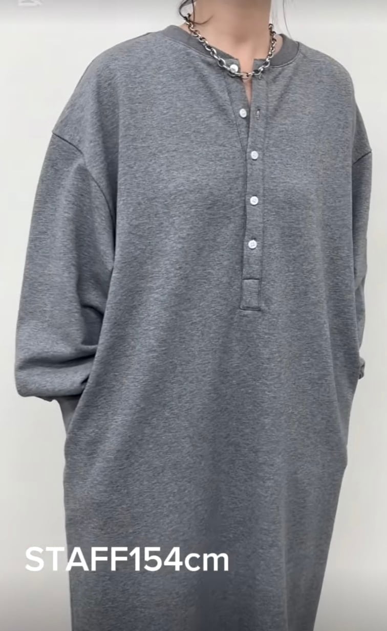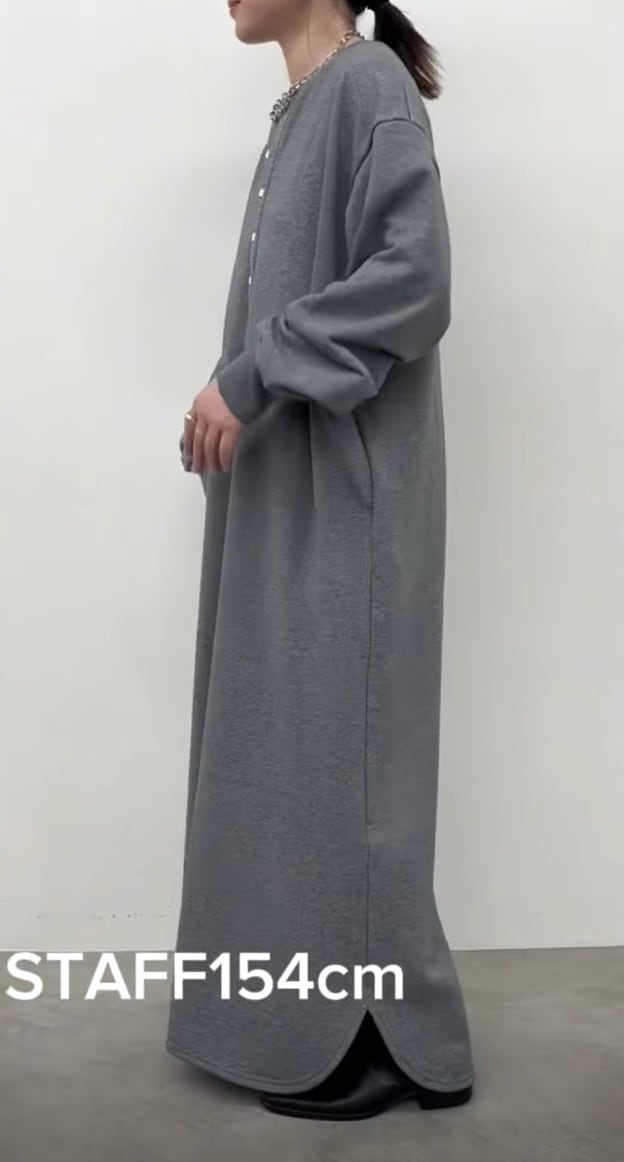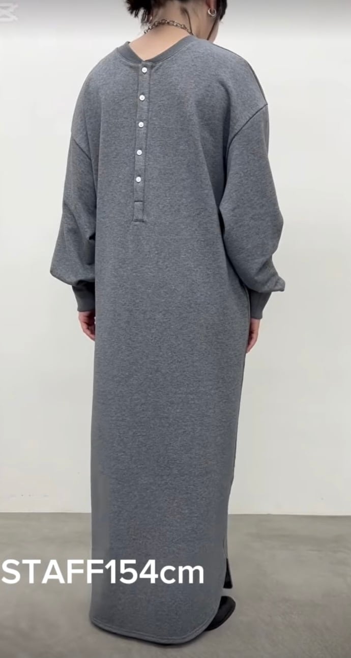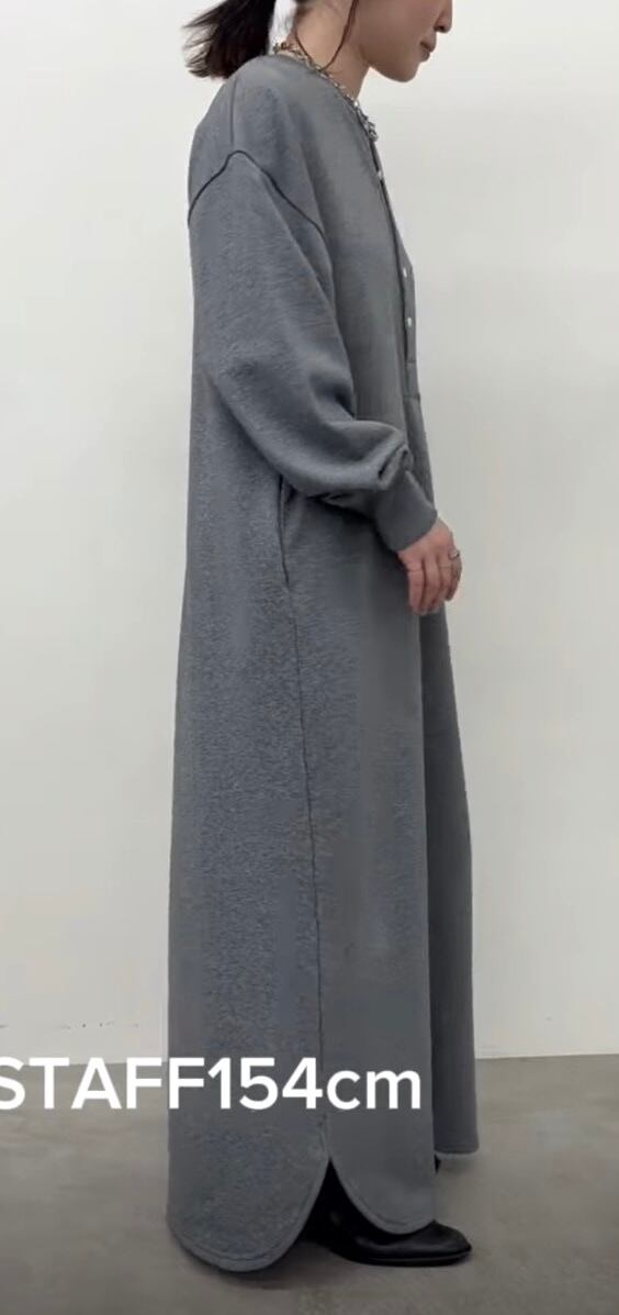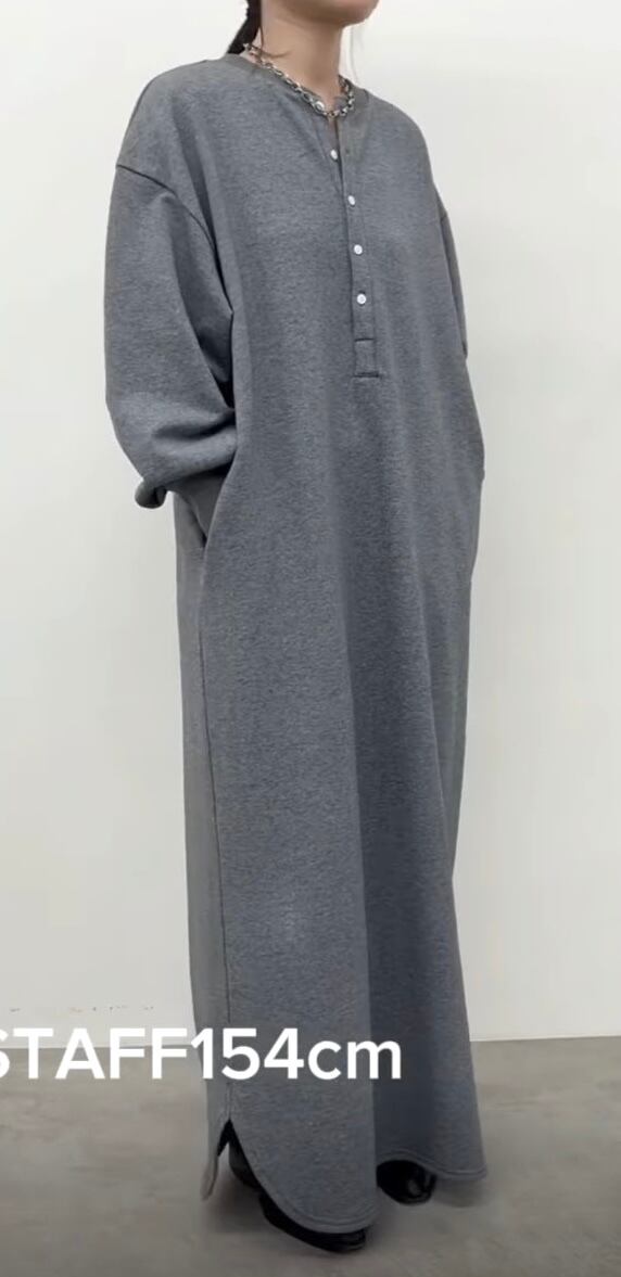 ヘンリーネックデザインがアクセントになったスウェットワンピース。