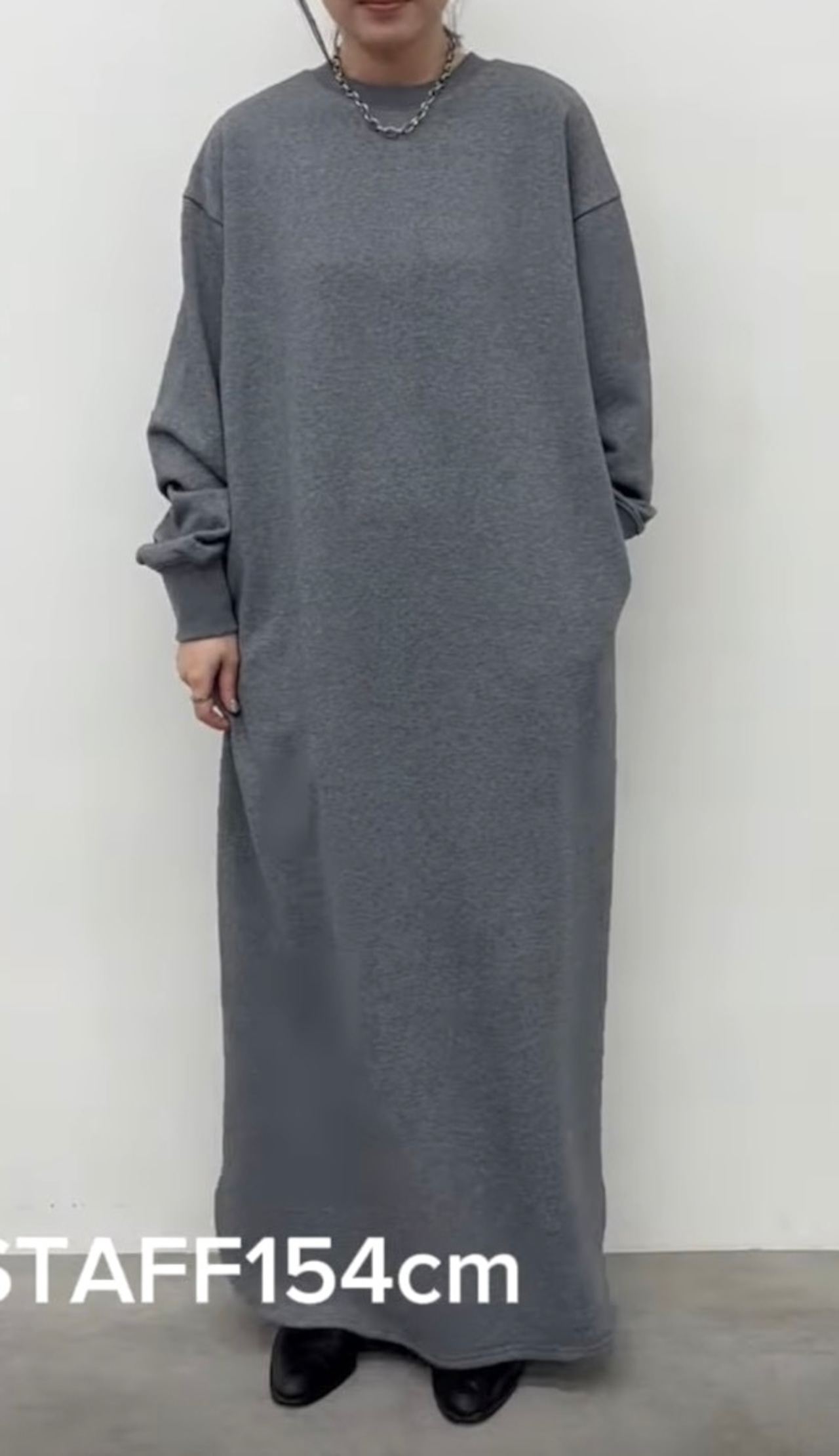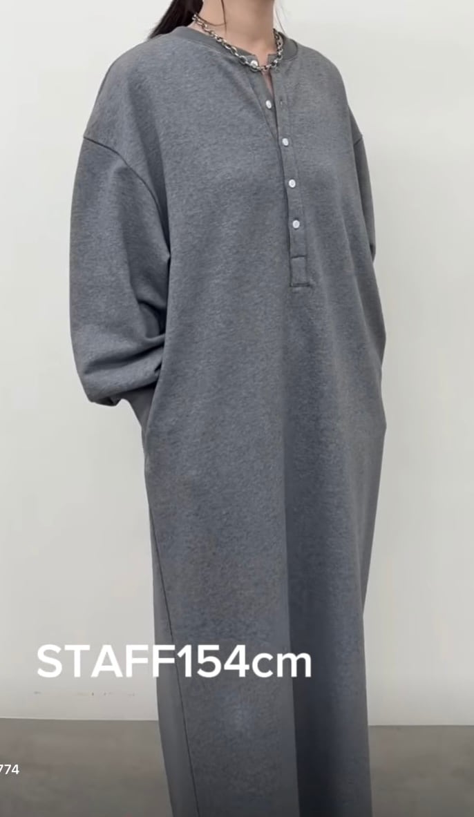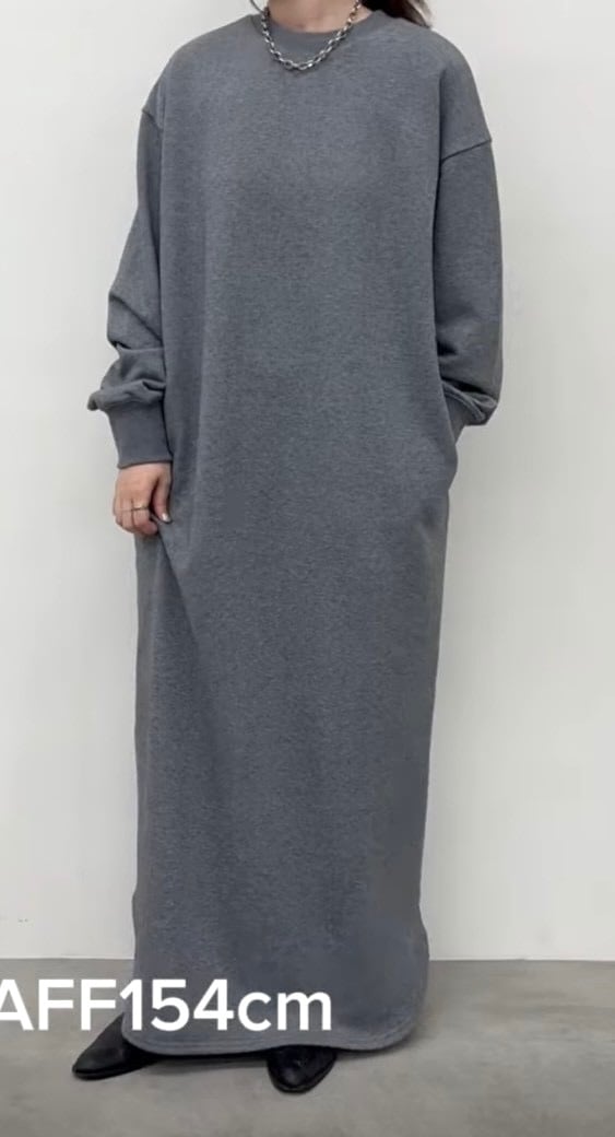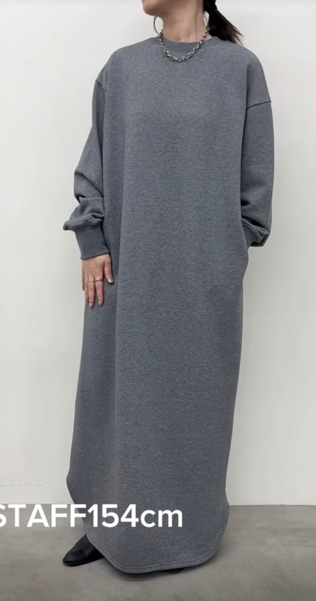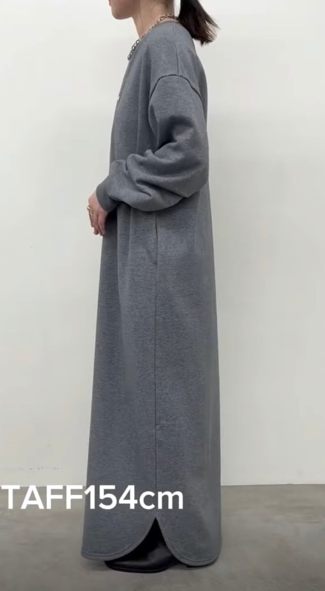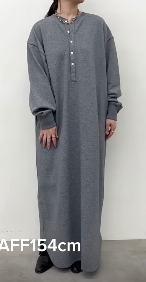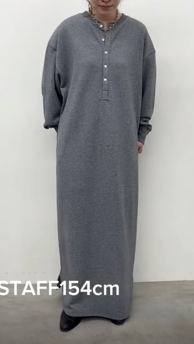 ヘンリーネックデザインがアクセントになったスウェットワンピース。
