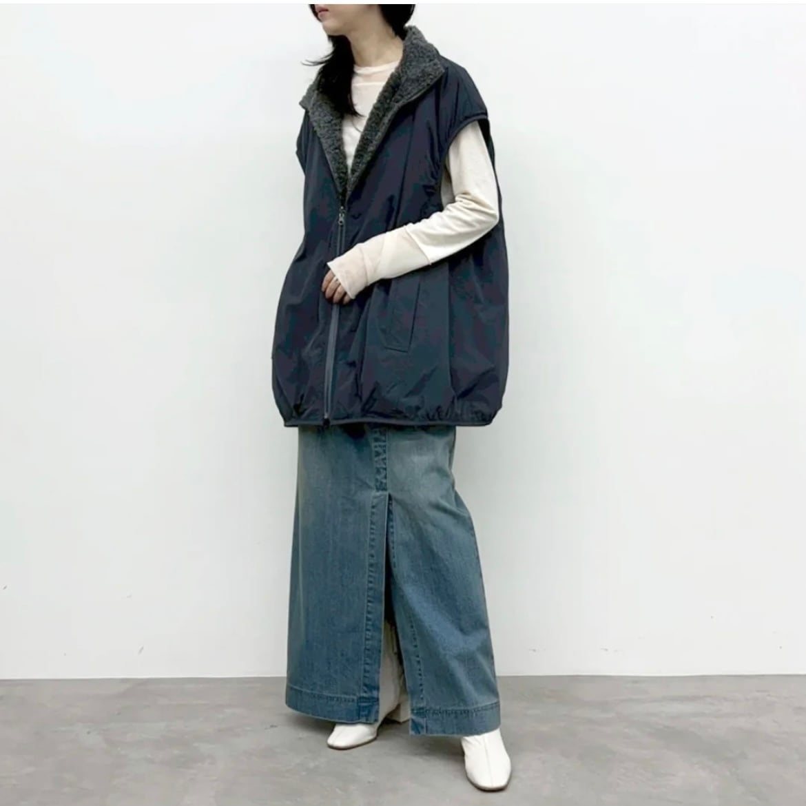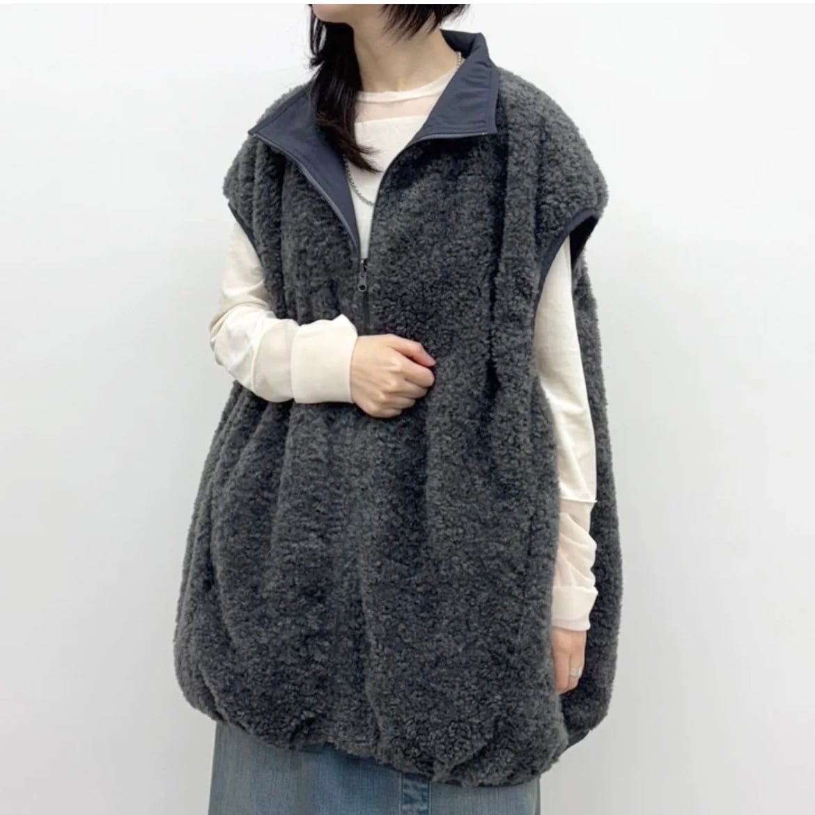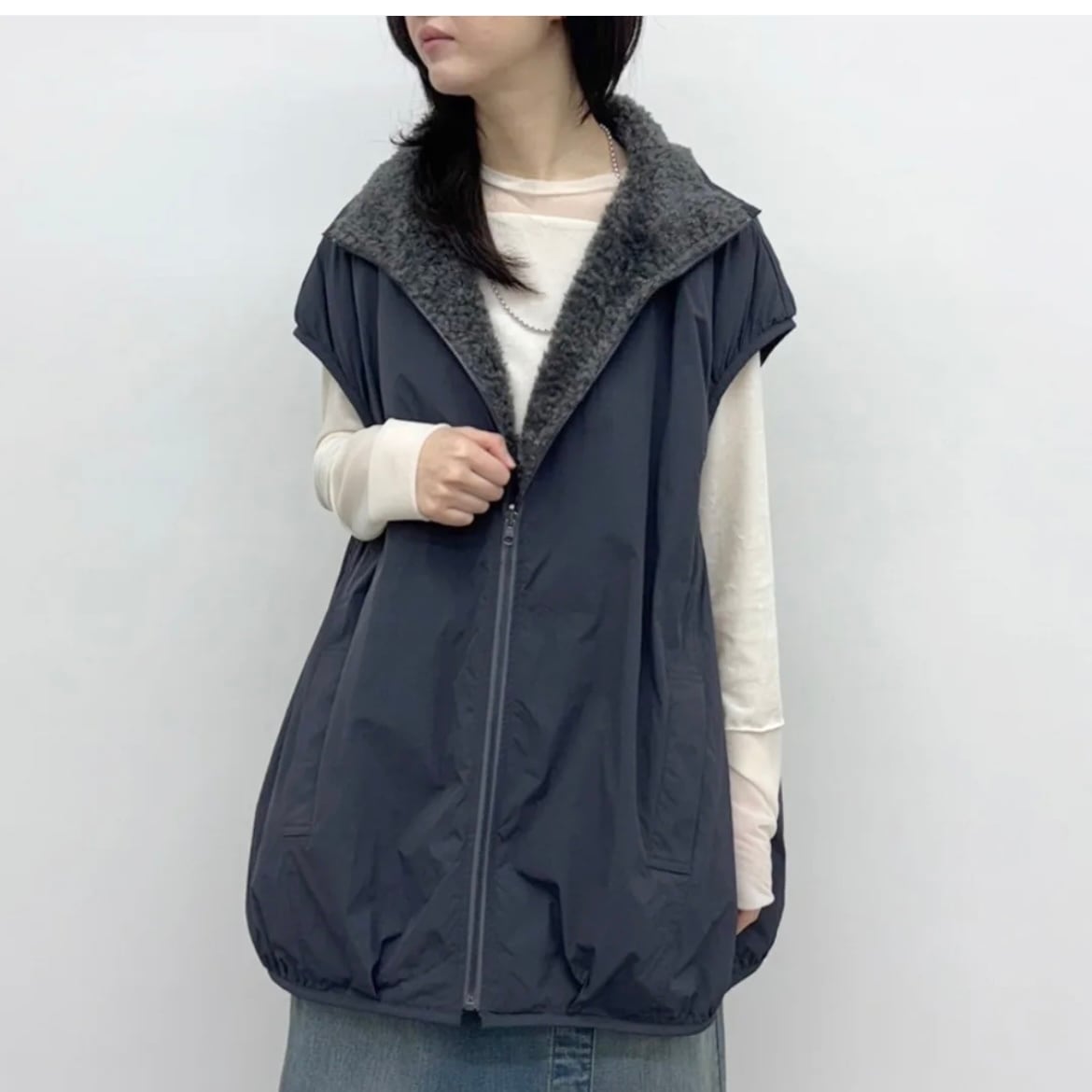 1枚で違った表情が楽しめるリバーシブルボアベスト。