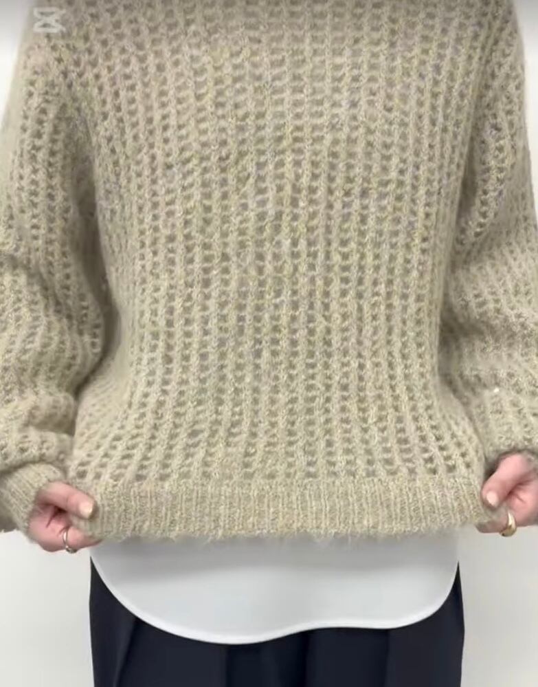ニットプルオーバー:軽やかでふんわりとしたウール混素材。