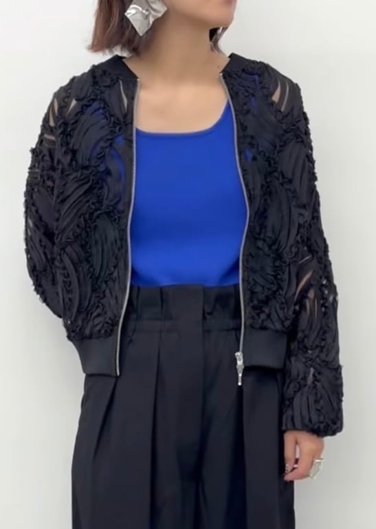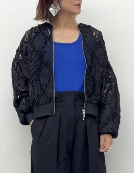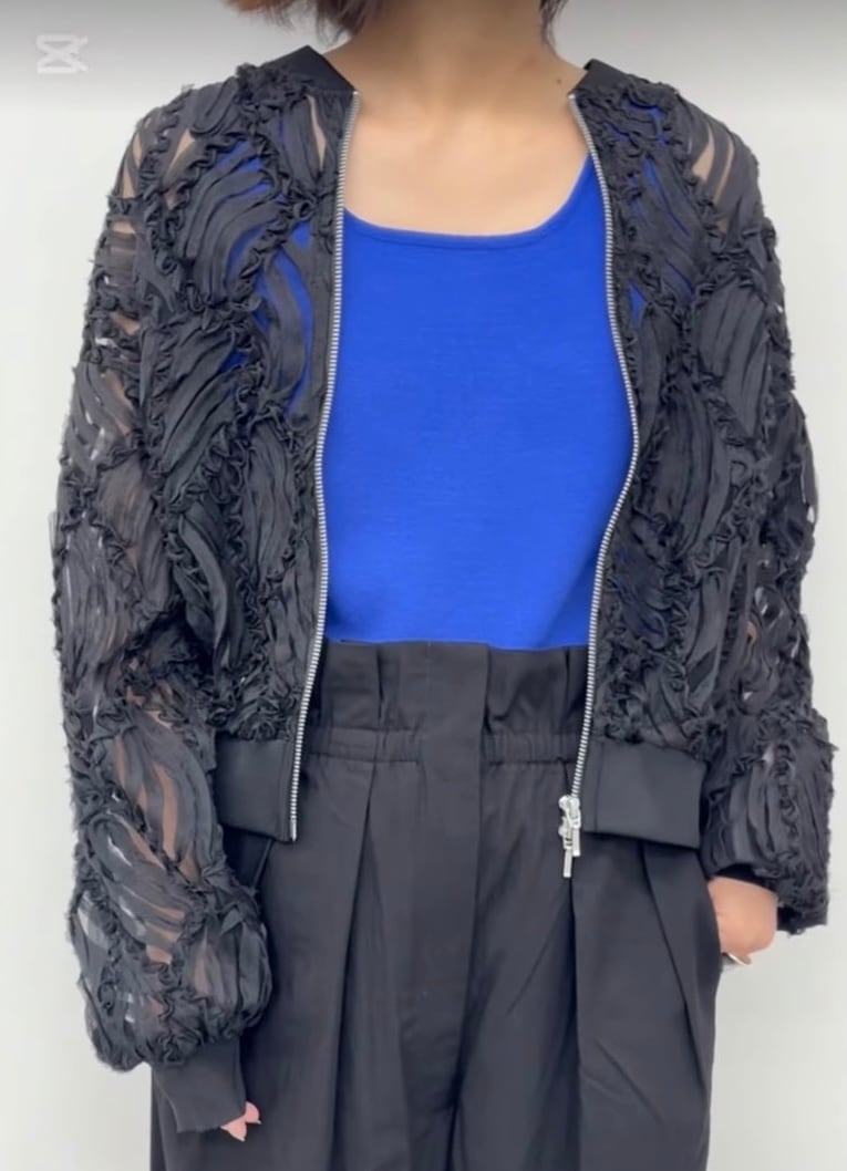 ジャガードレースが存在感抜群なシアーブルゾン。