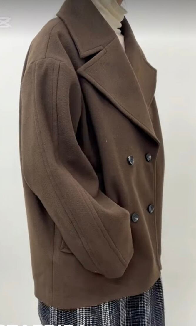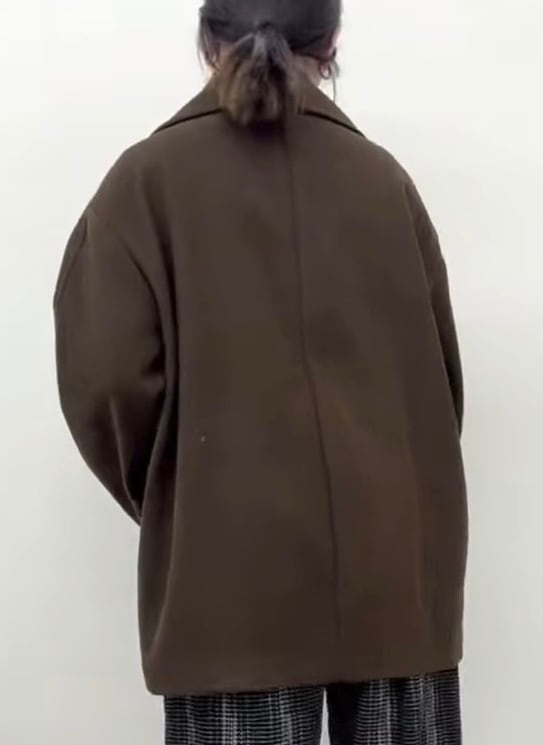 大きな衿と丸みのあるボリュームスリーブがアクセント。