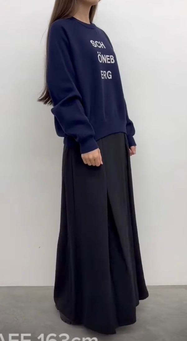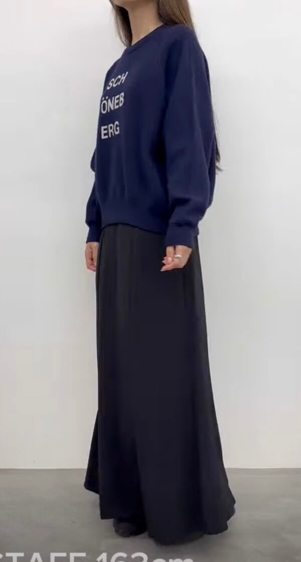 前裾がカーブしていて長過ぎずワイドパンツやスカートにもぴったりな1枚です。