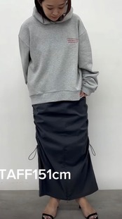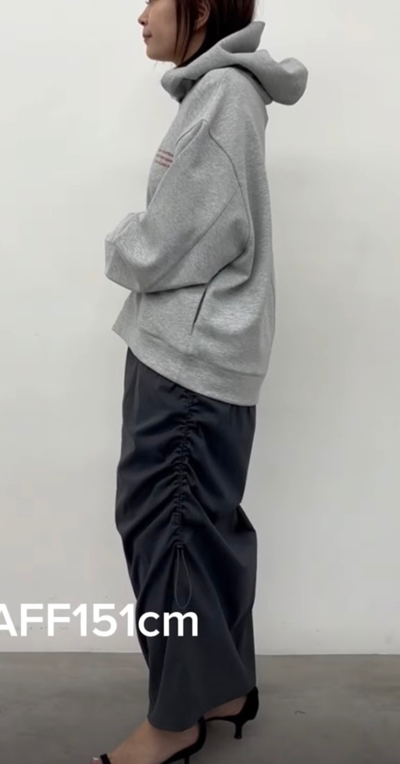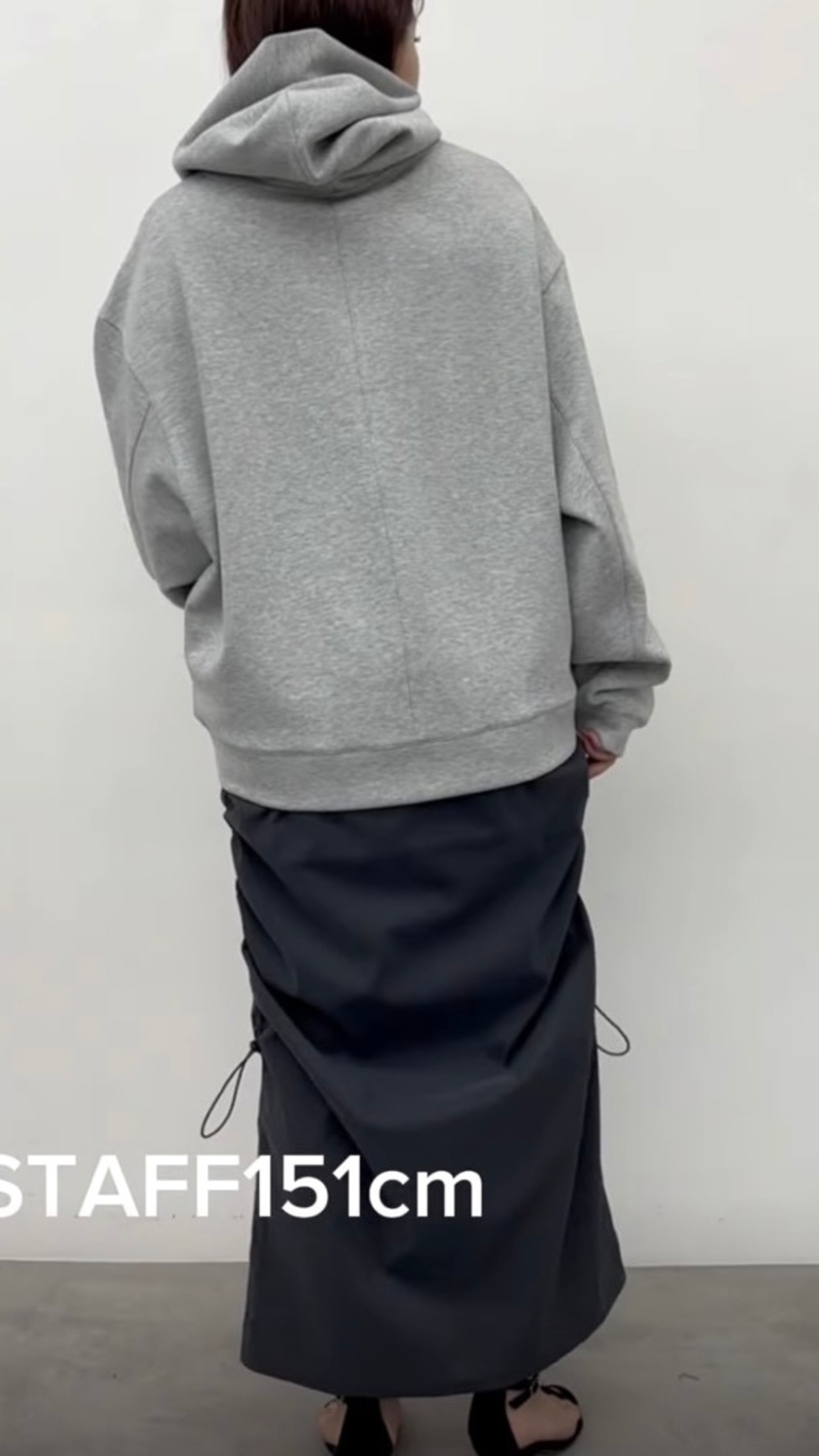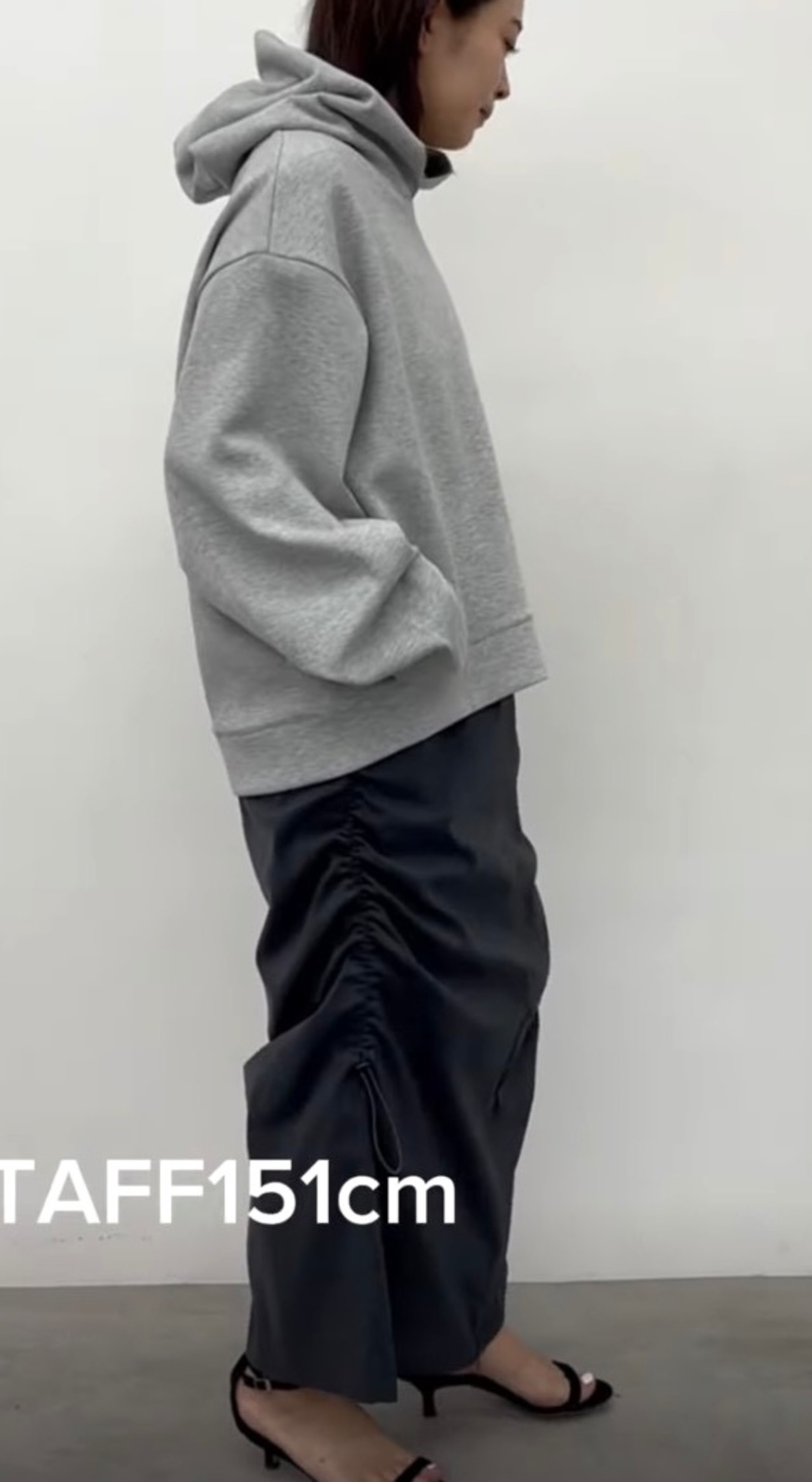 ドロップショルダーでゆったりとした身幅とコンパクトな丈感でバランスよく合わせられる1枚。