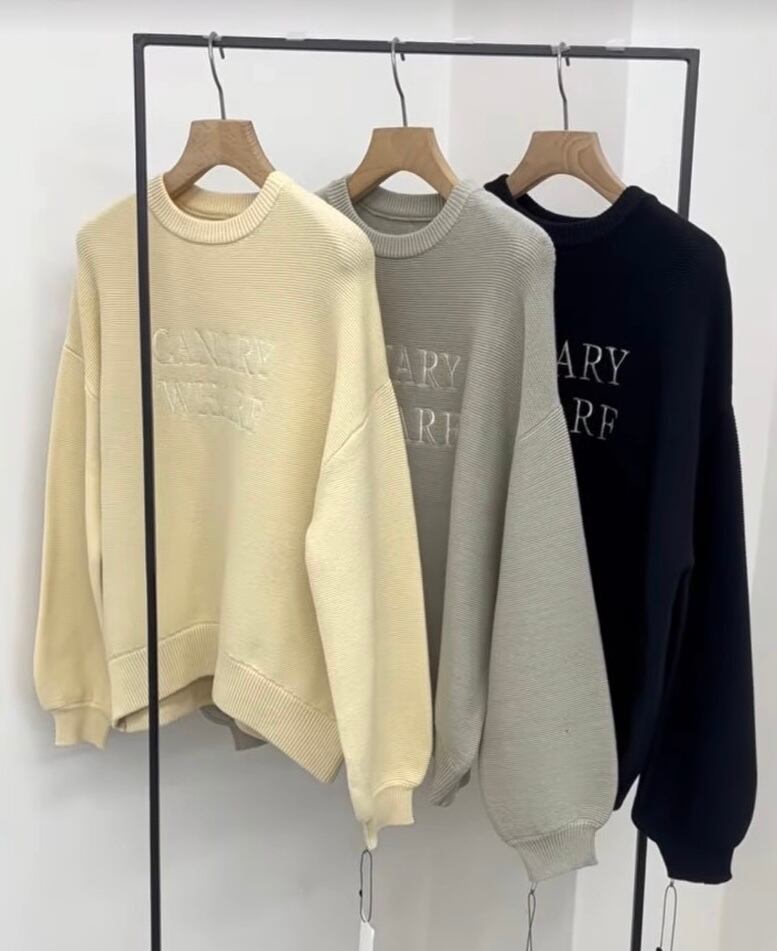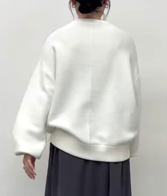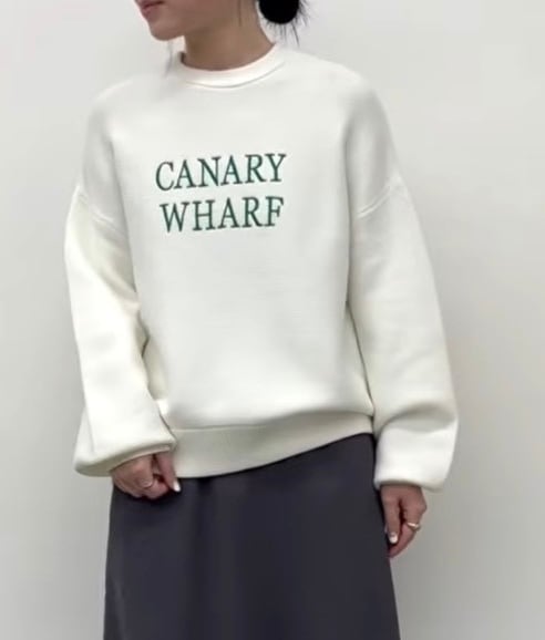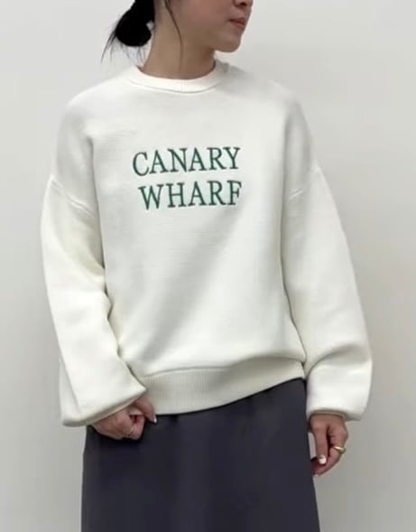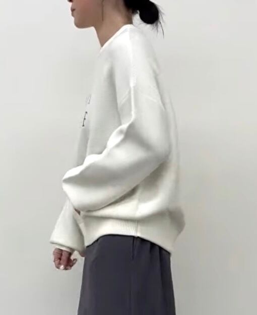 ゆったりめのサイズに袖のボリューム感が可愛いロゴニット。