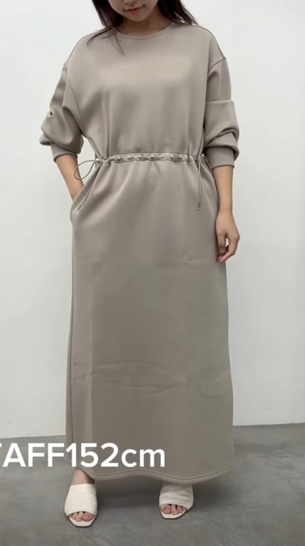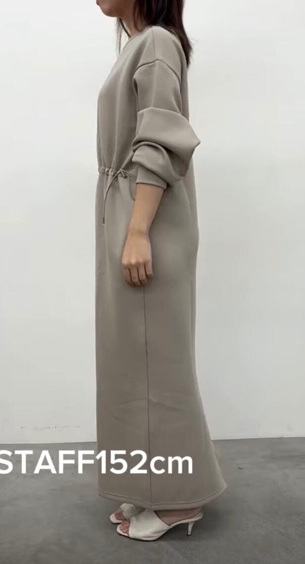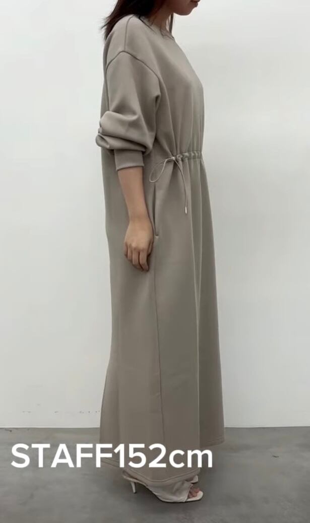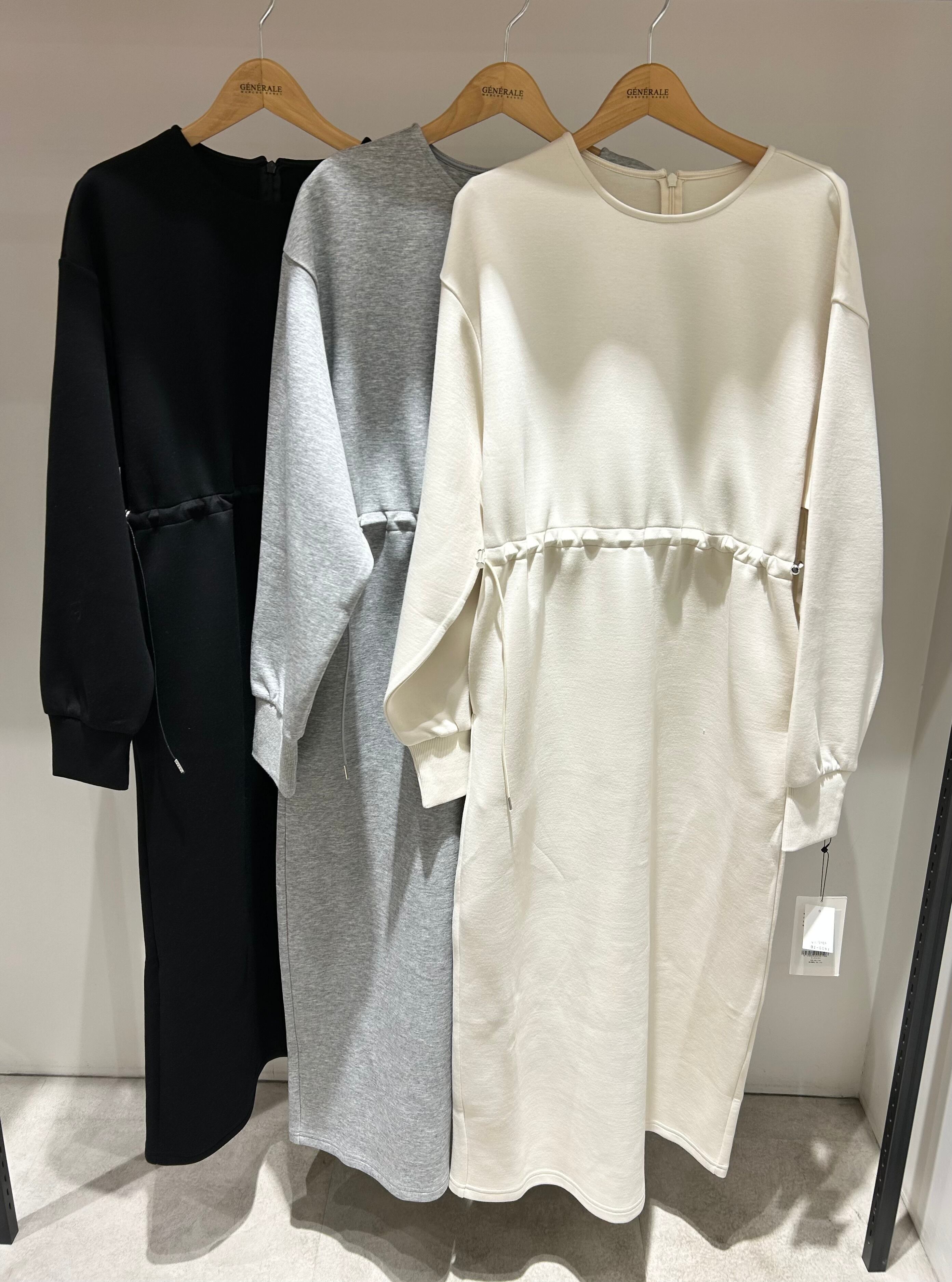 ウエストのドローコードで色々なデザインを楽しめるIラインシルエットワンピース。