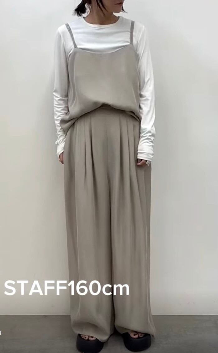 レイヤード次第で幅広いコーディネートを楽しめるのはもちろん、同素材のワイドパンツと合わせたセットアップコーデもおすすめです◎
