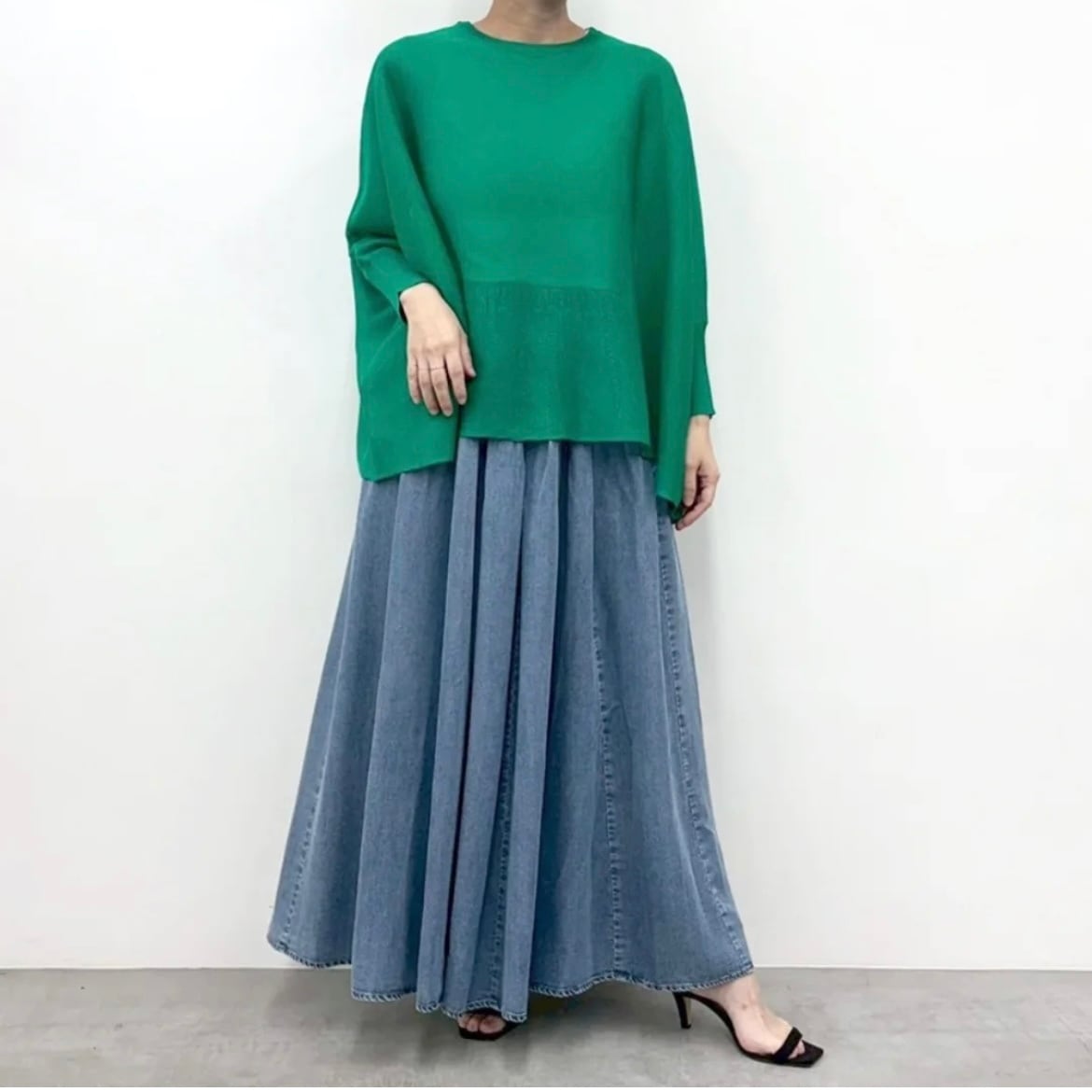 Tシャツと合わせてカジュアルに着こなしたり、涼し気なサマーニット合わせも可愛い1着です。