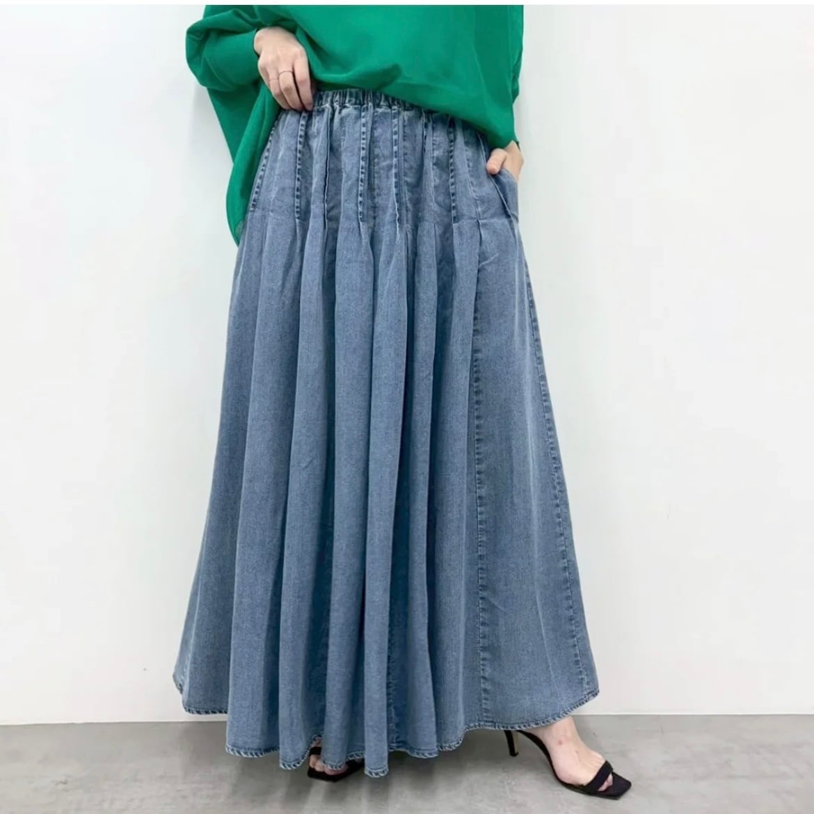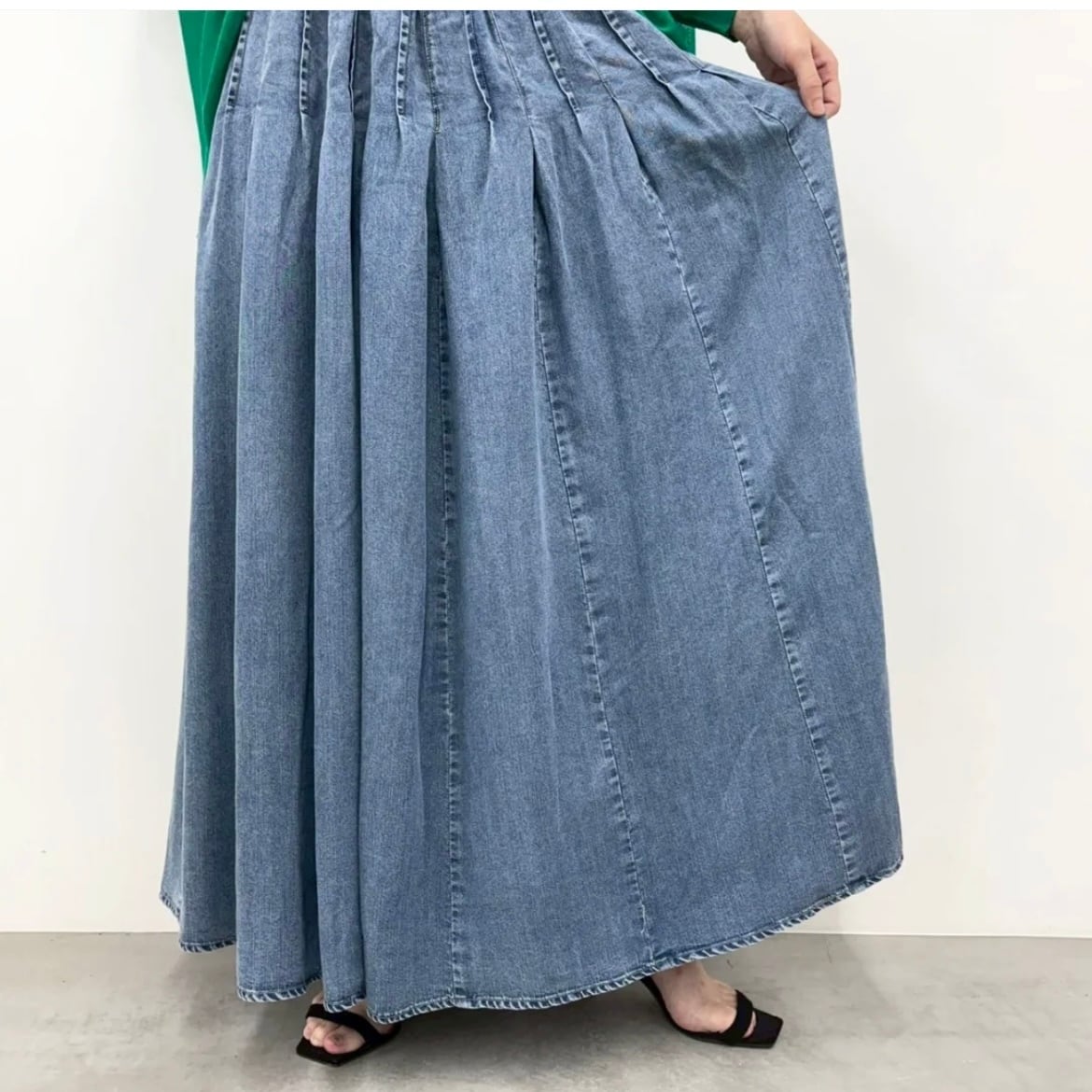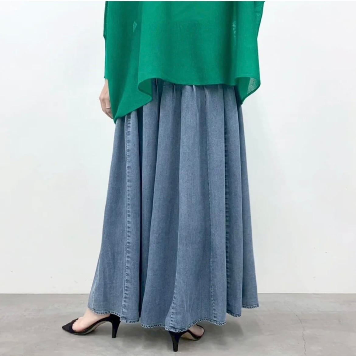 ウエスト部分にタックを施したボリューム感たっぷりのフレアスカート。