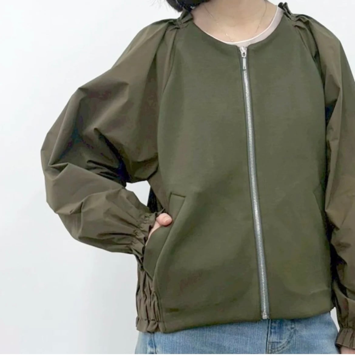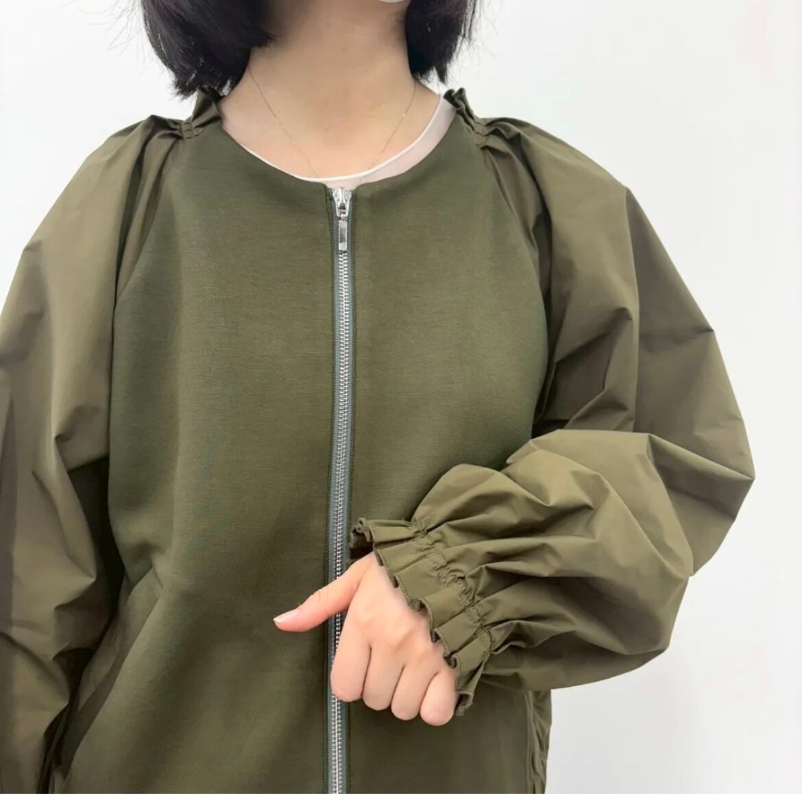 袖のギャザーが華やかな印象の1枚。