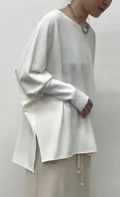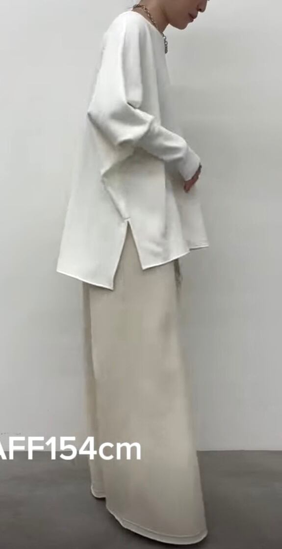 袖口の長リブやサイドスリットがスタイリングにメリハリをプラス。
