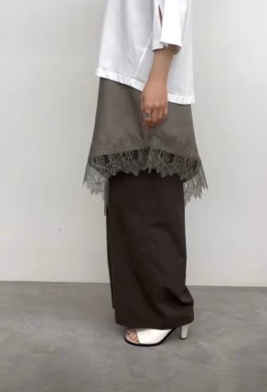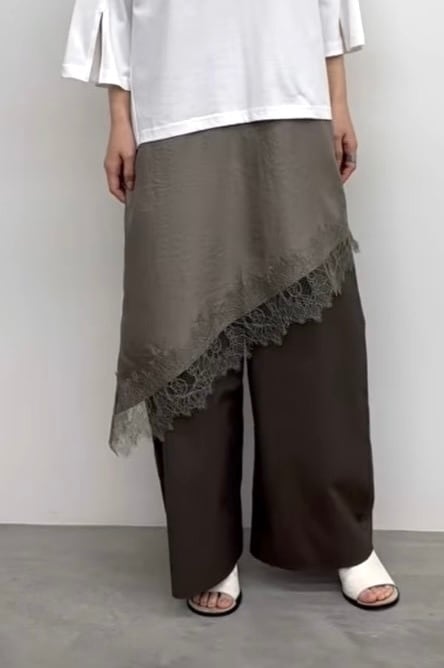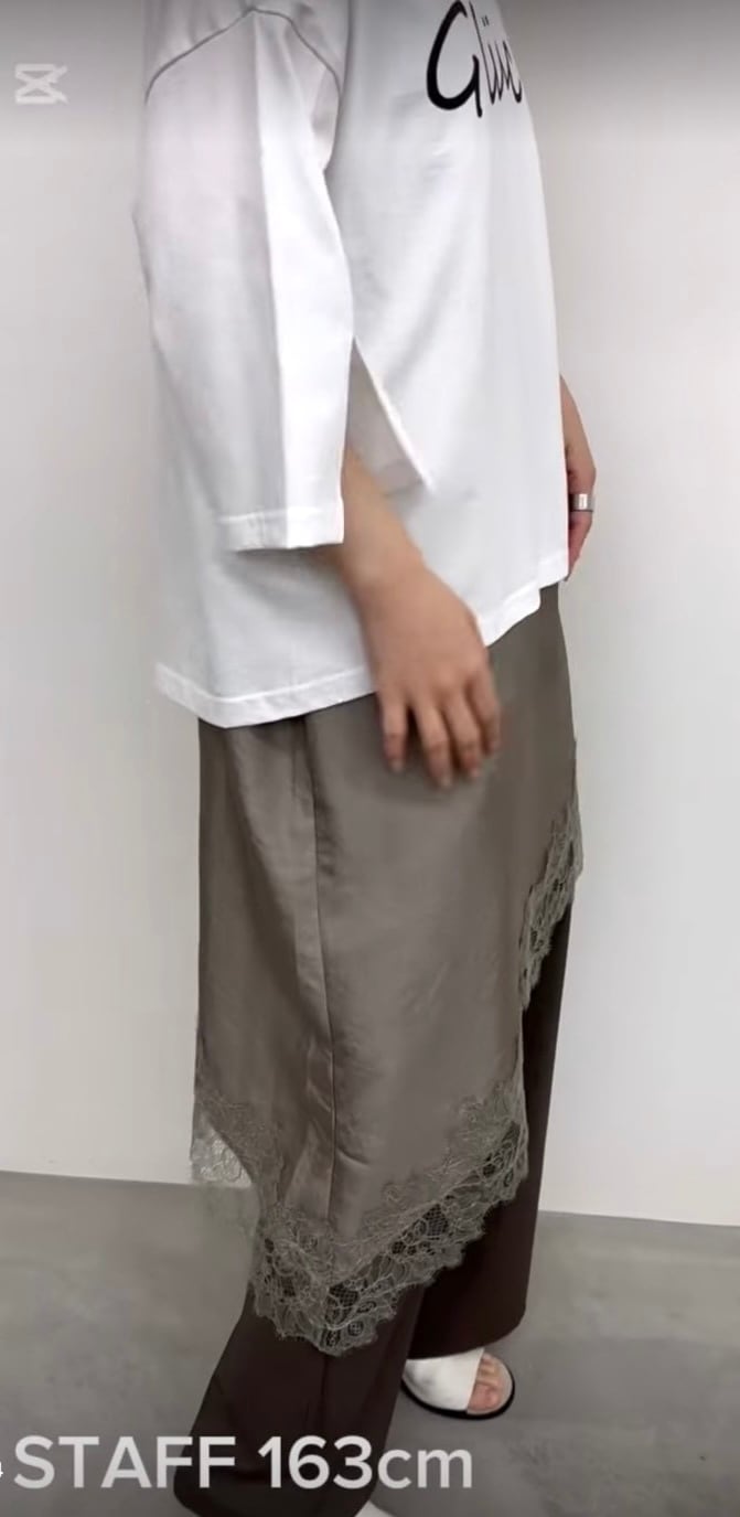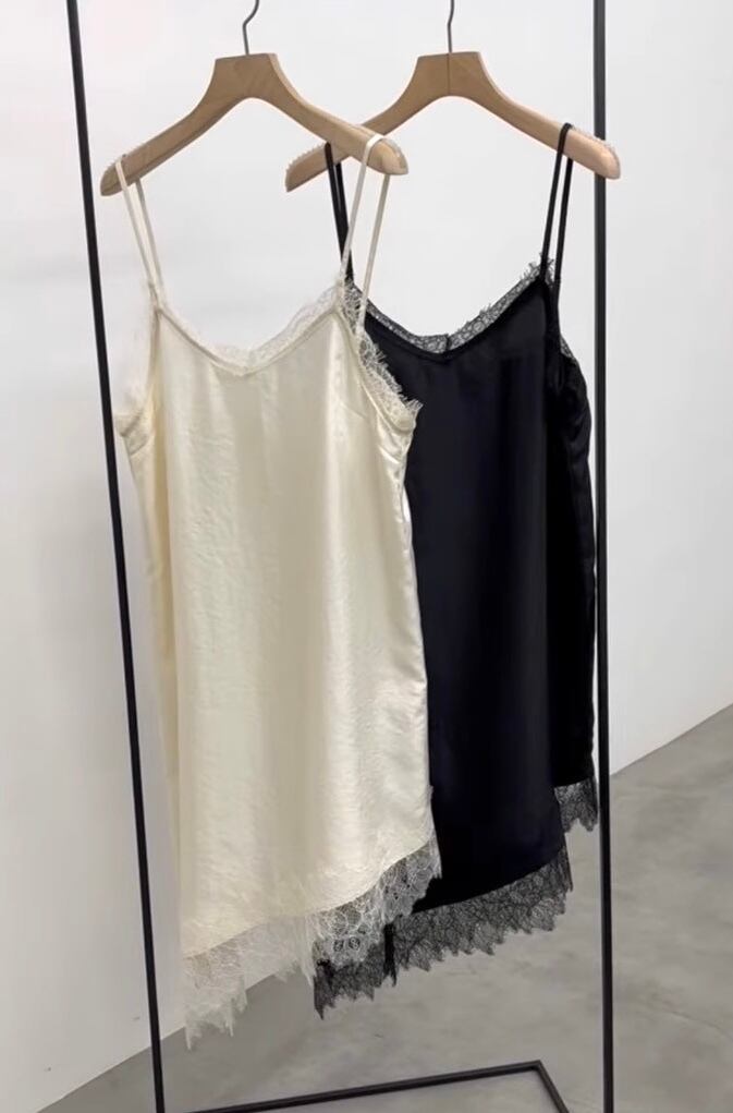 アシンメトリーなヘムラインと繊細なレース使いが目をひくレースキャミソール。