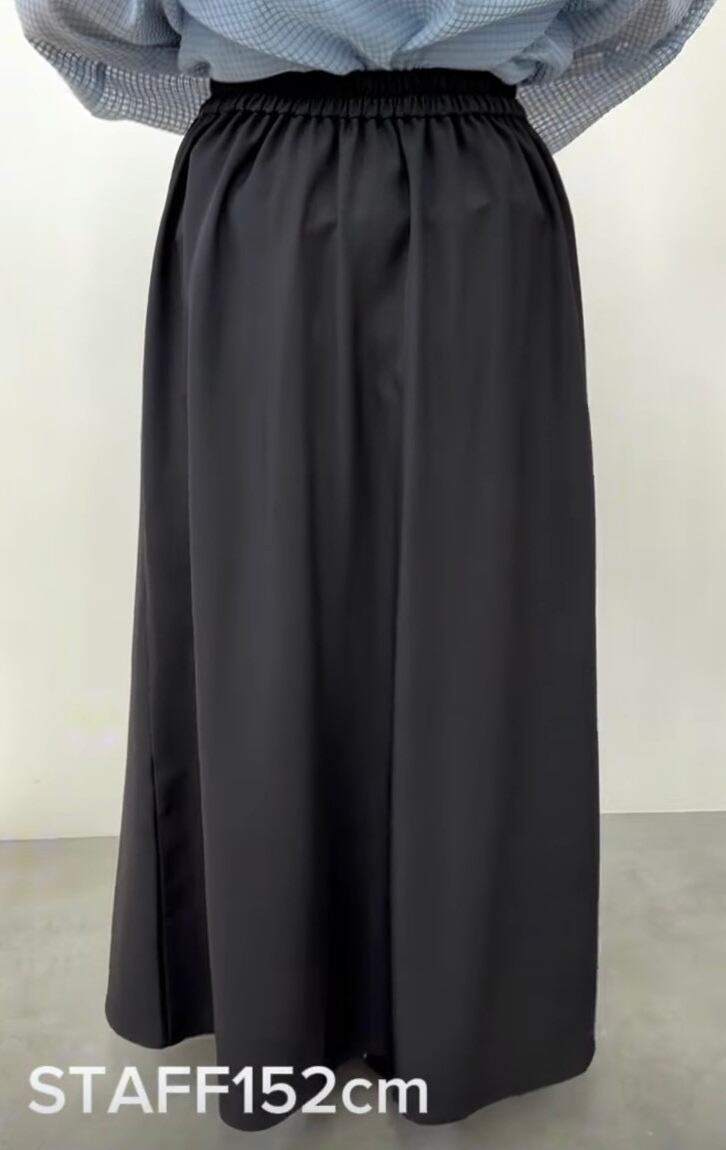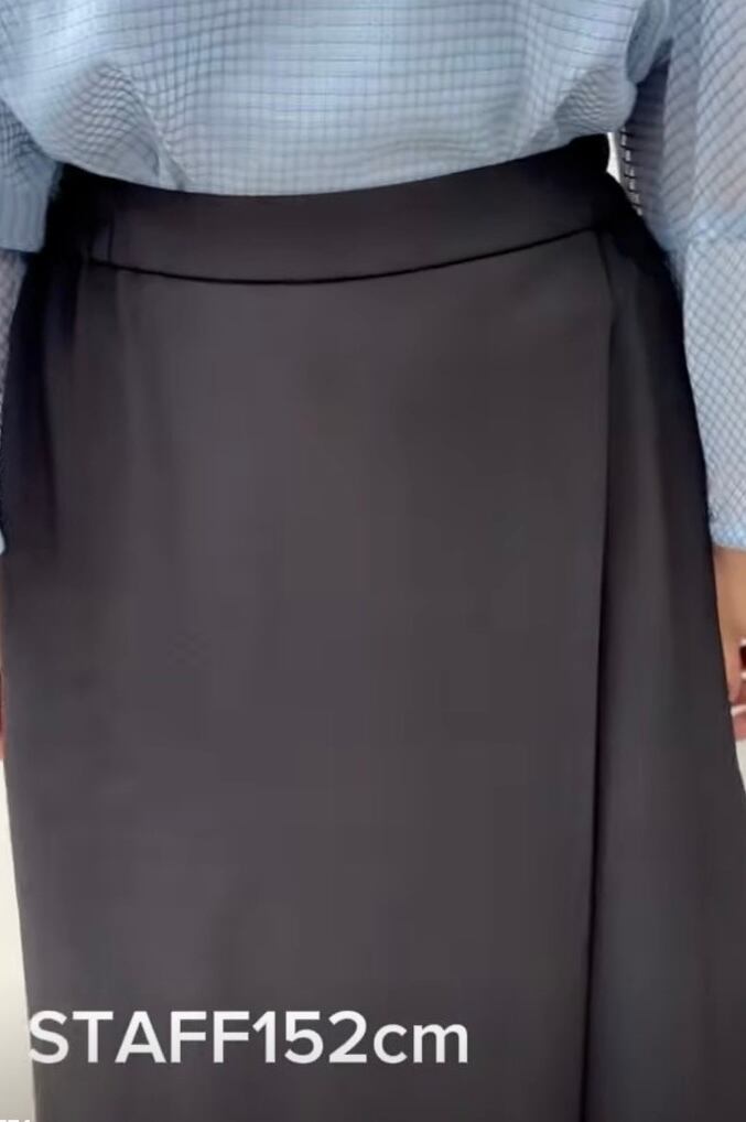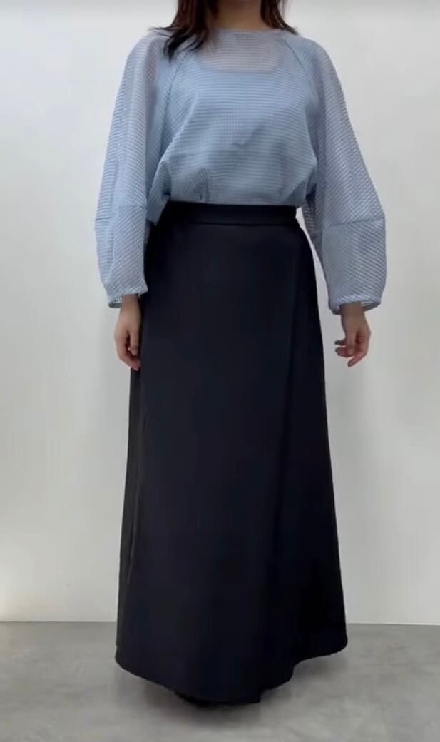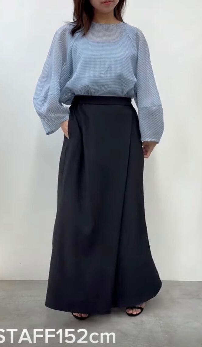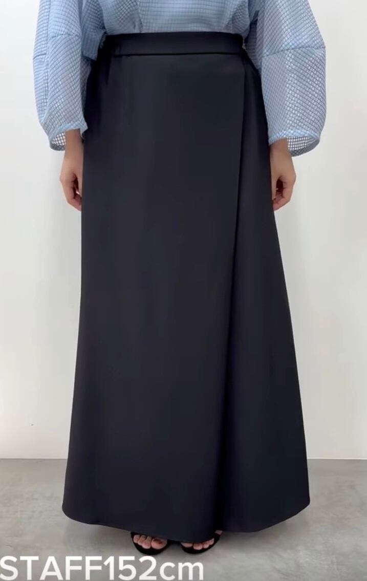 フロントのラップ風デザインがアクセントのきいたスカート。