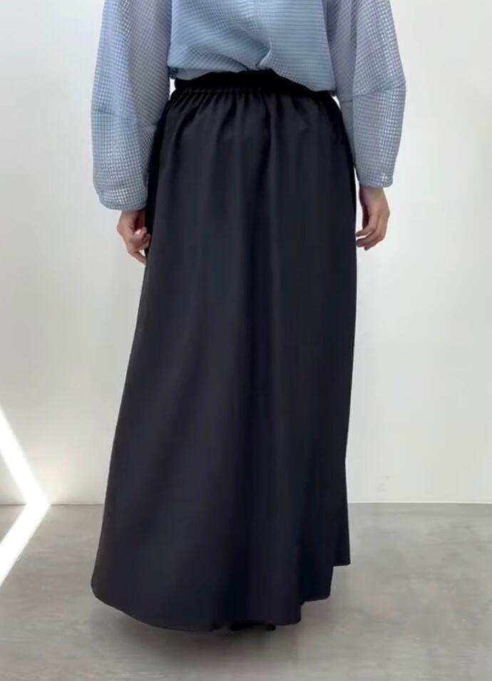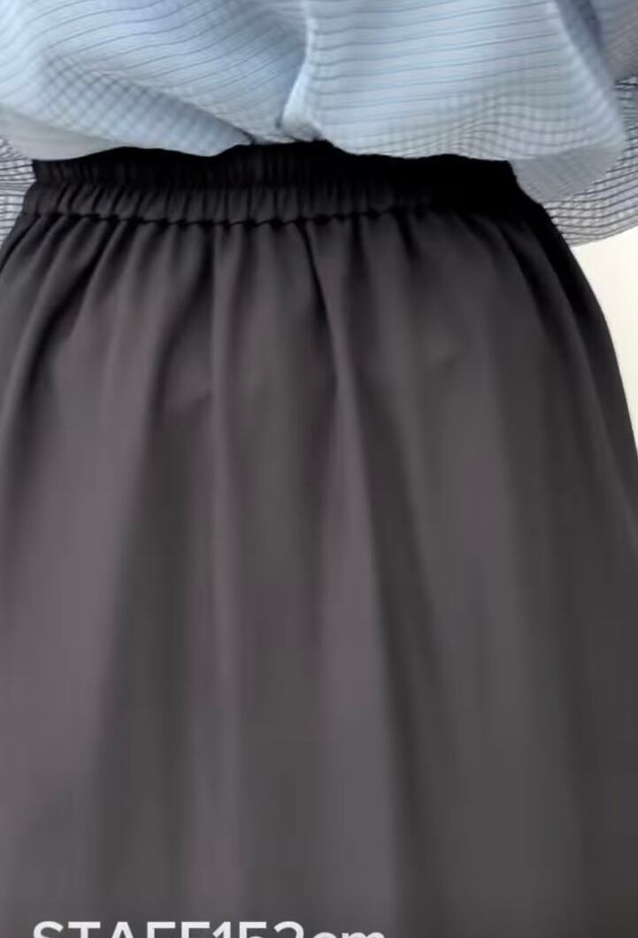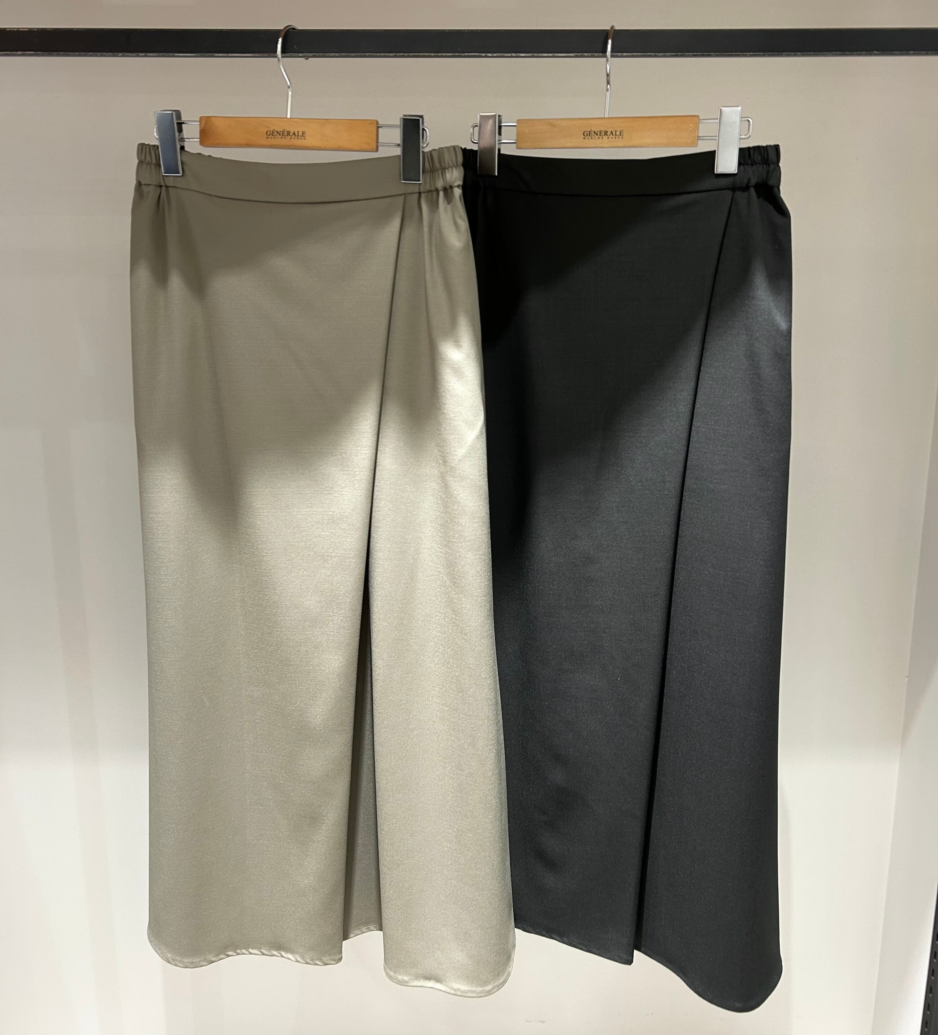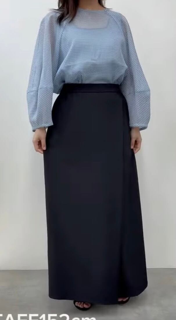 フロントのラップ風デザインがアクセントのきいたスカート。