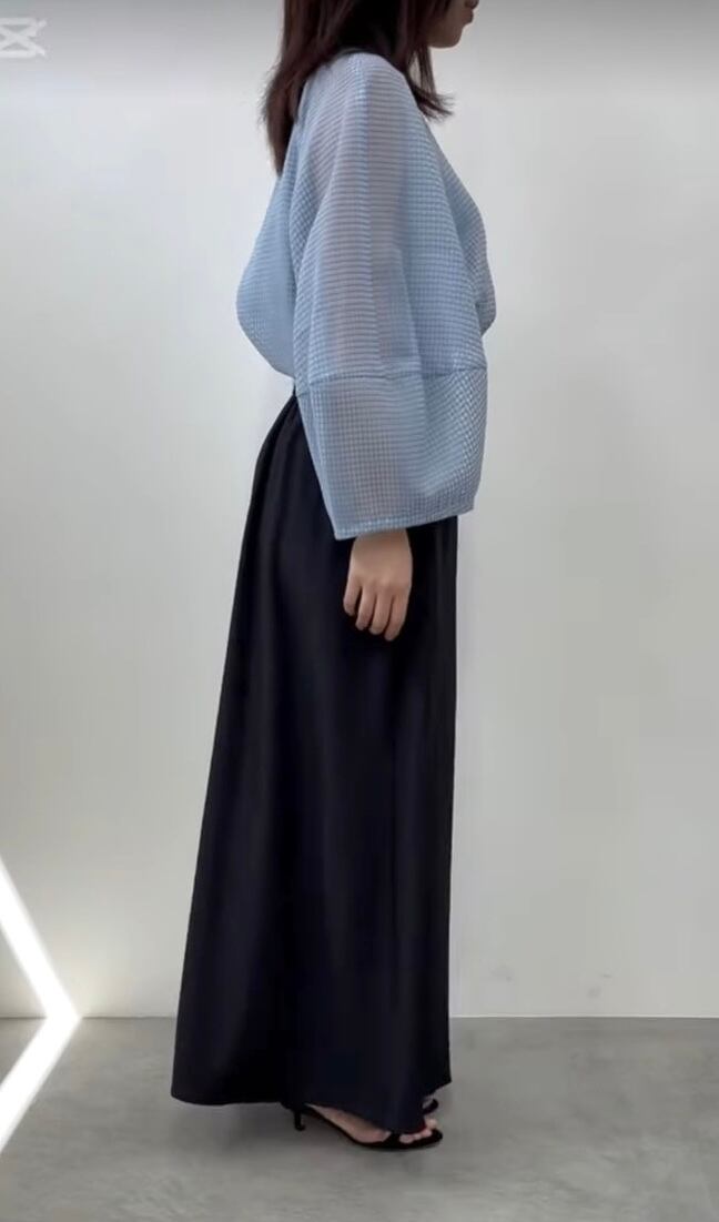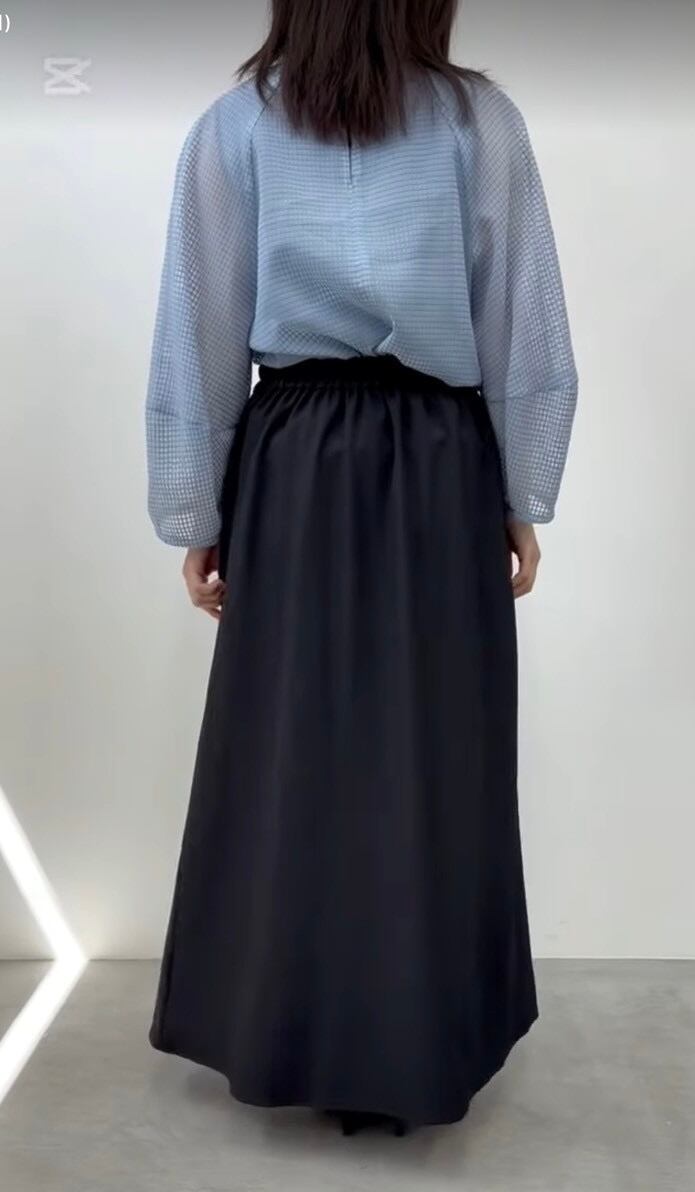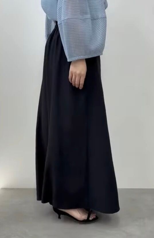 腰から裾にかけて緩やかに広がるシルエット。身体のラインを拾わず、着こなしやすいのが魅力。