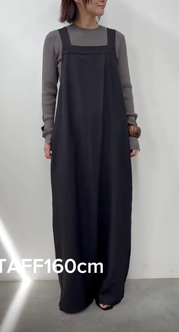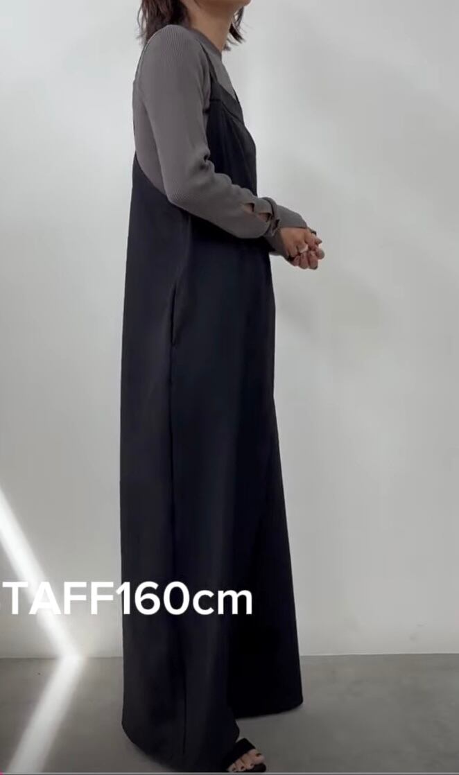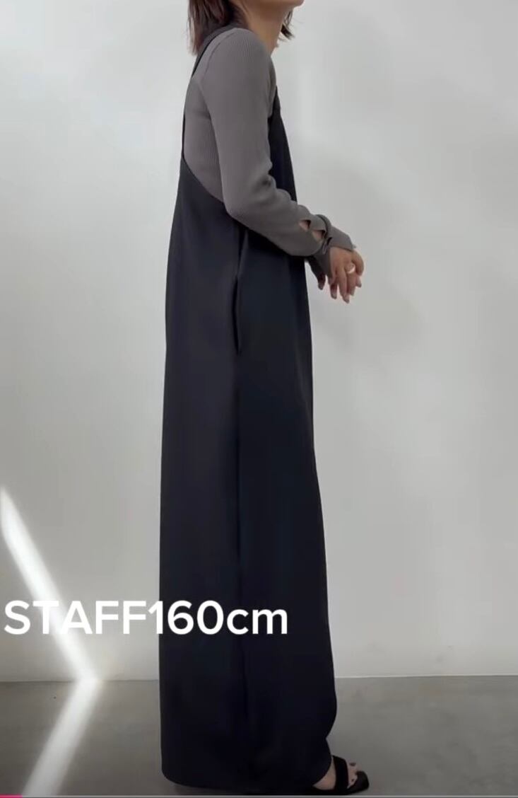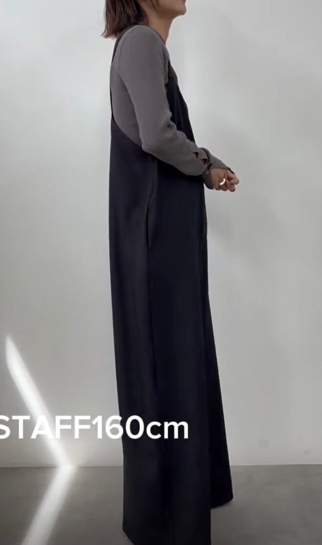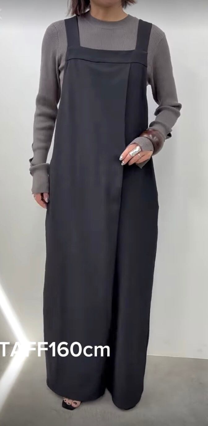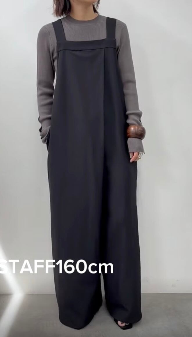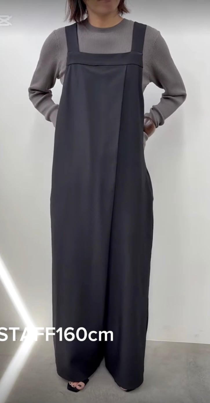 落ち感のある上品な素材感で大人な雰囲気で着こなせるサロペットです。