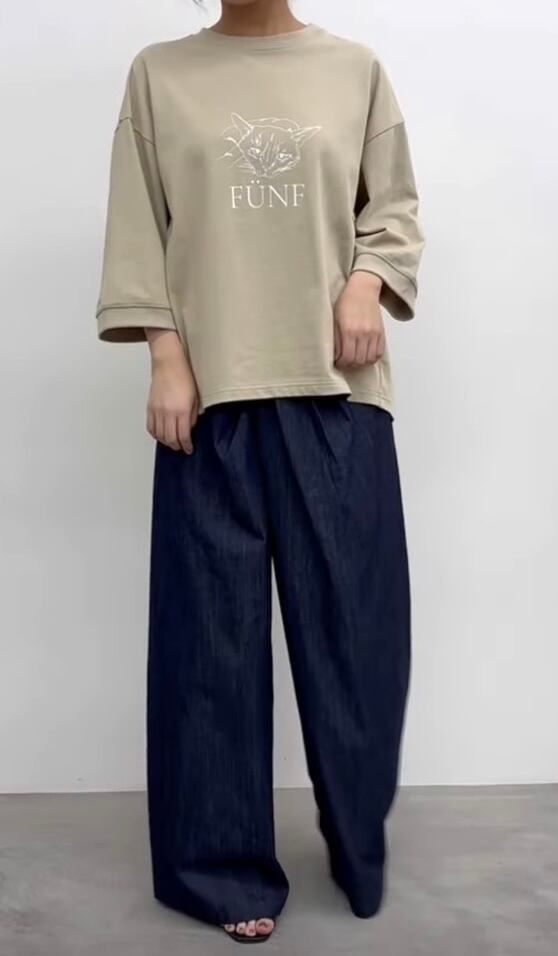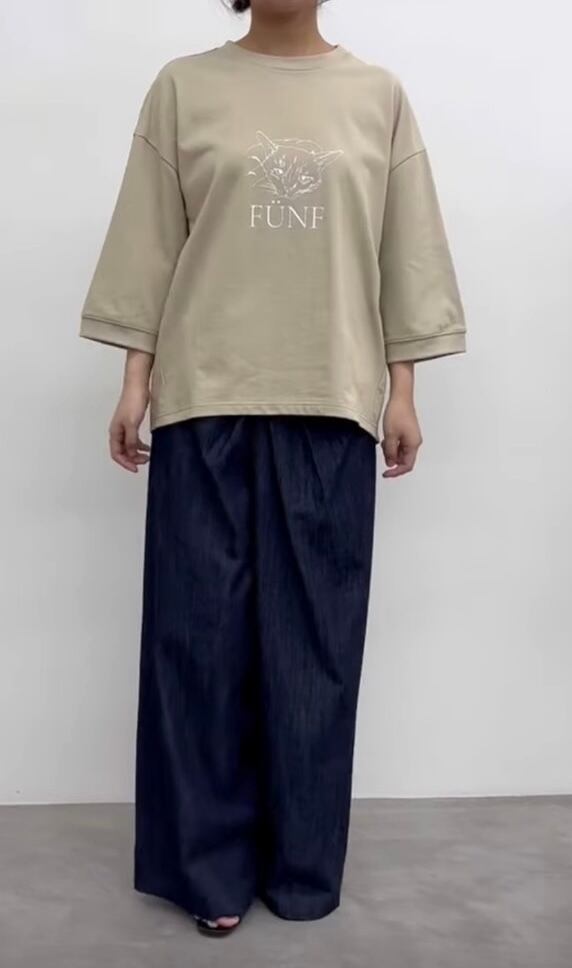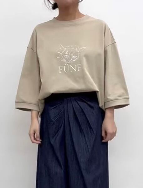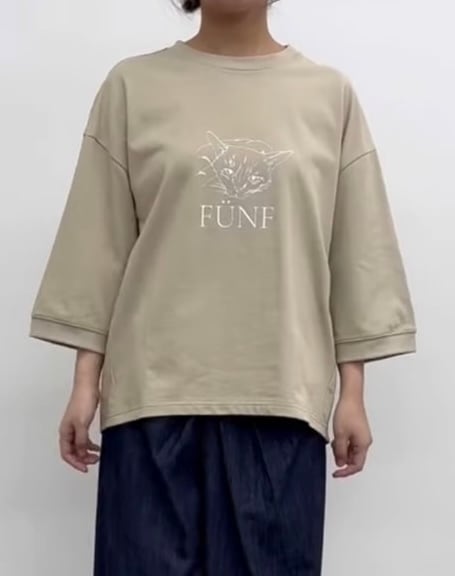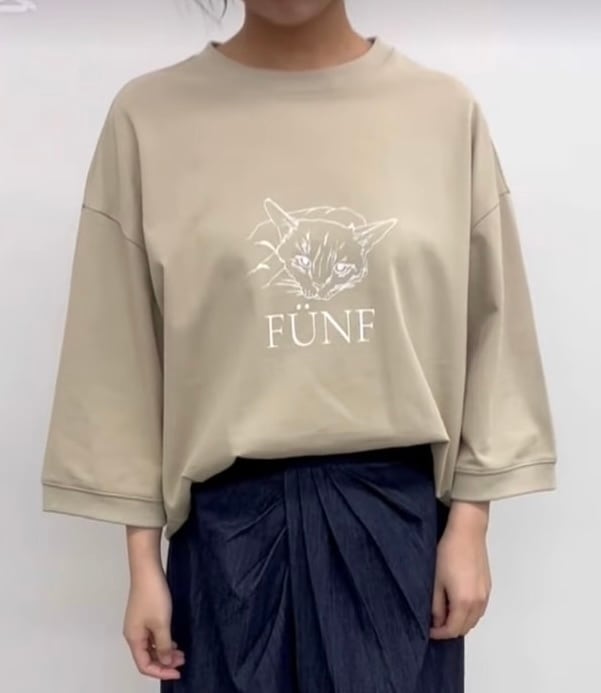 イラストタッチの猫プリントが目をひくカットソー。