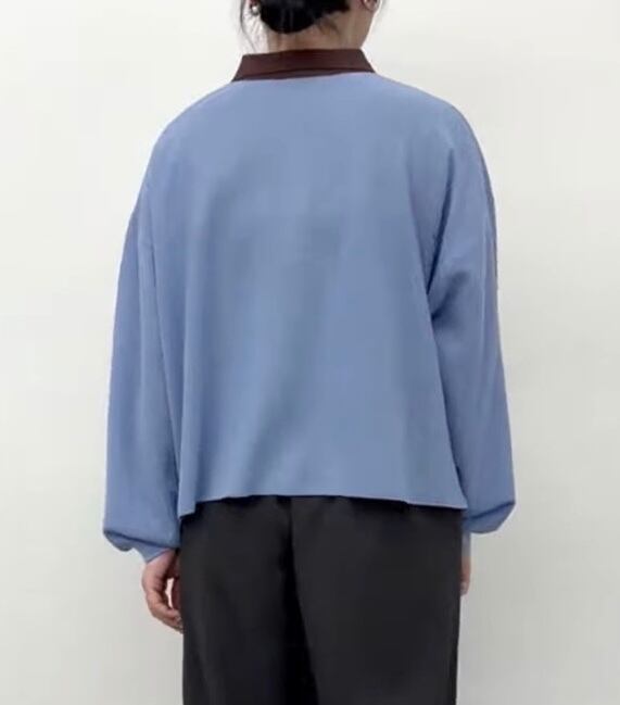 衿と前立ての配色がポイントになった鹿の子編みニットポロ。
