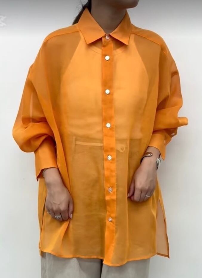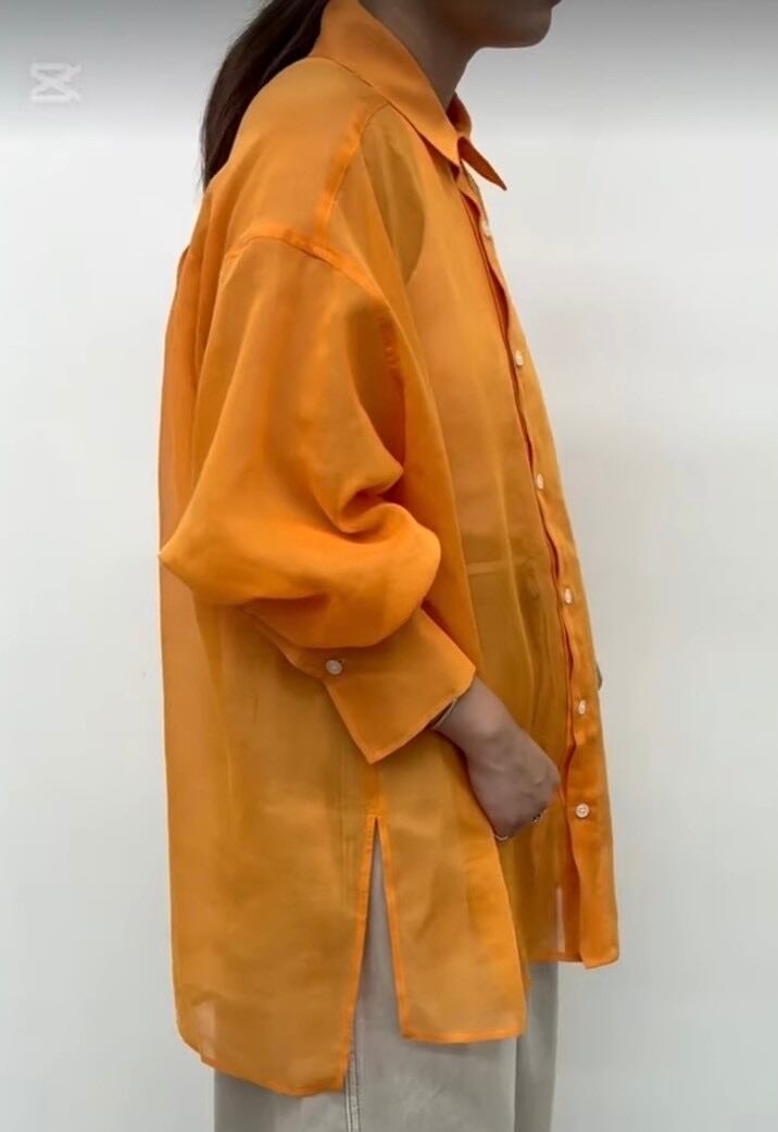 麻のような風合いに加工された、透け感のある軽やかな着心地。