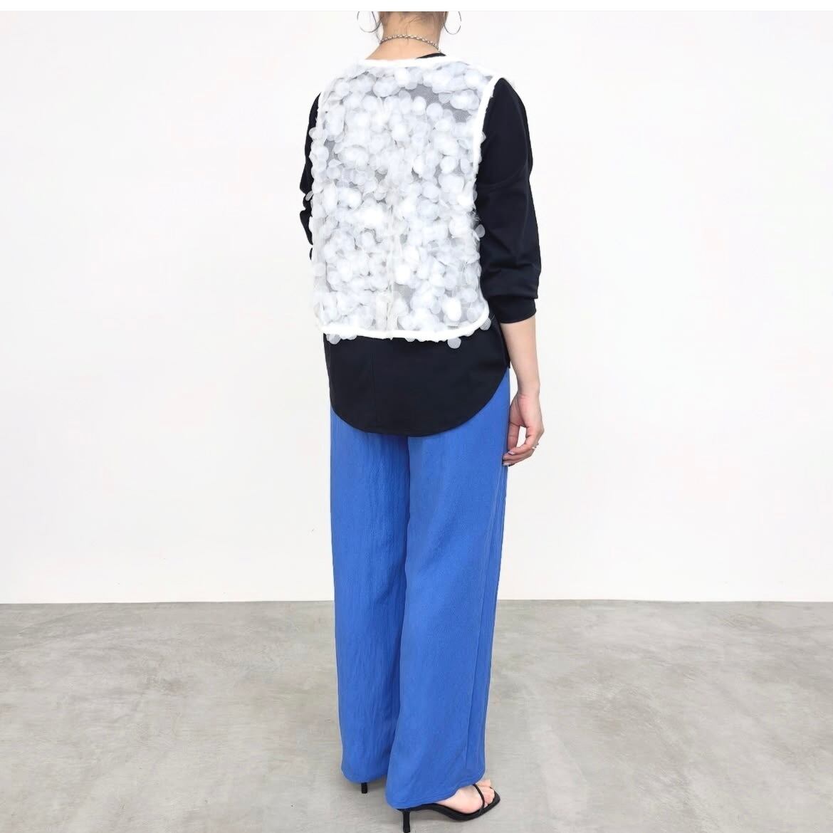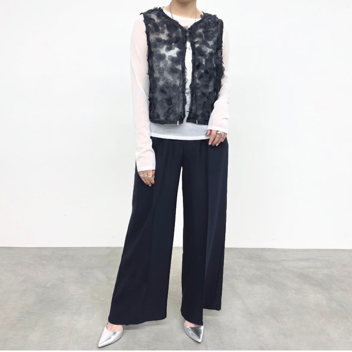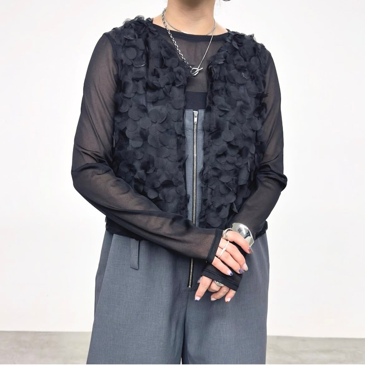 チュール素材ならではの繊細さと、立体的に重なったボリューム感がポイント。