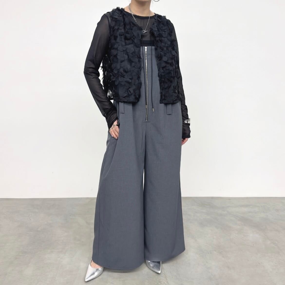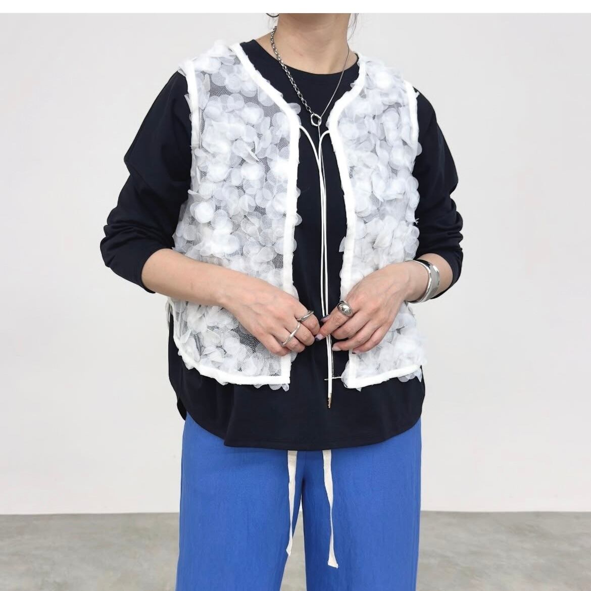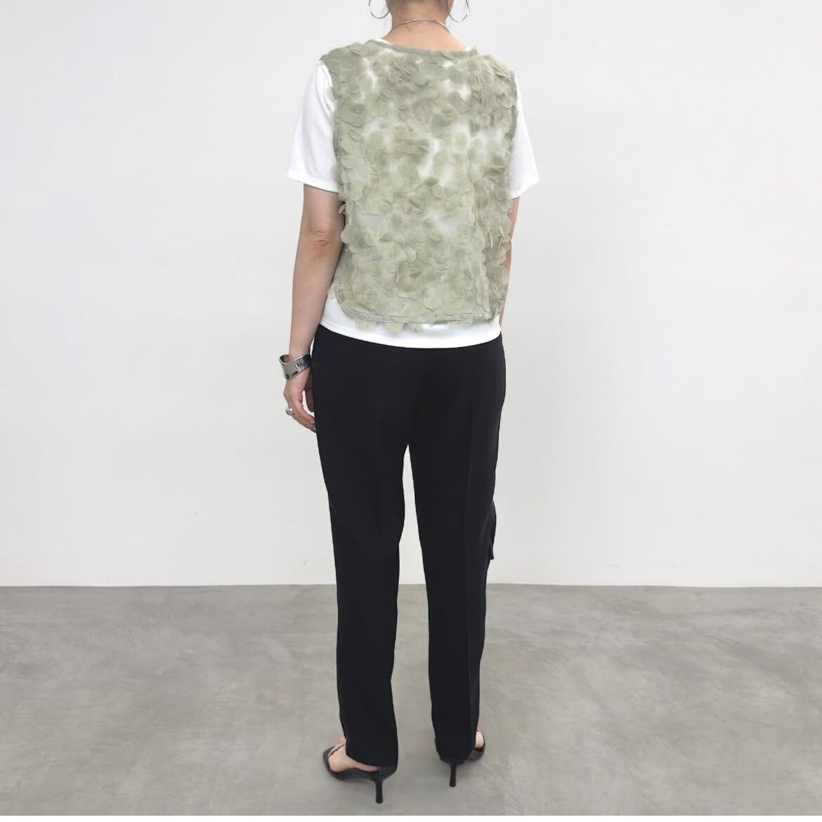チュール素材ならではの繊細さと、立体的に重なったボリューム感がポイント。
