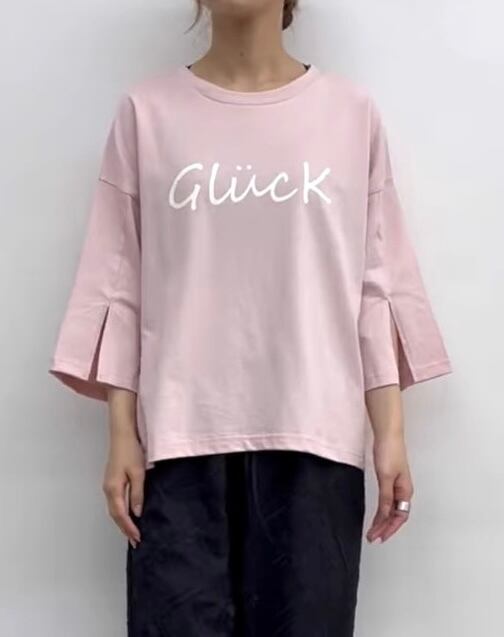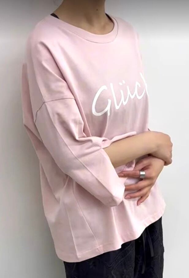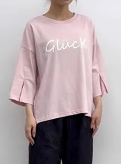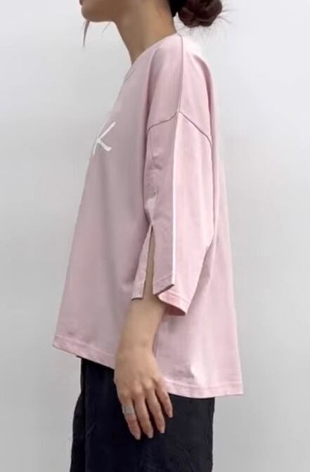ゆったりとしたシルエットに手書き風のロゴが大人可愛いカットソー。