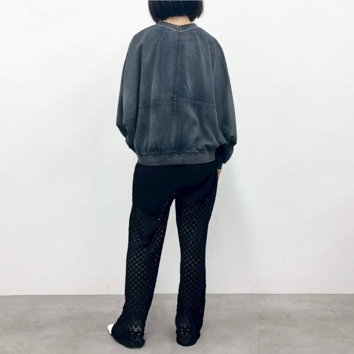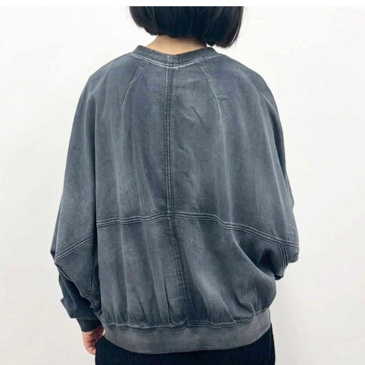 ゆったりとしたドルマンスリーブに裾リブがシルエットにメリハリをプラス。