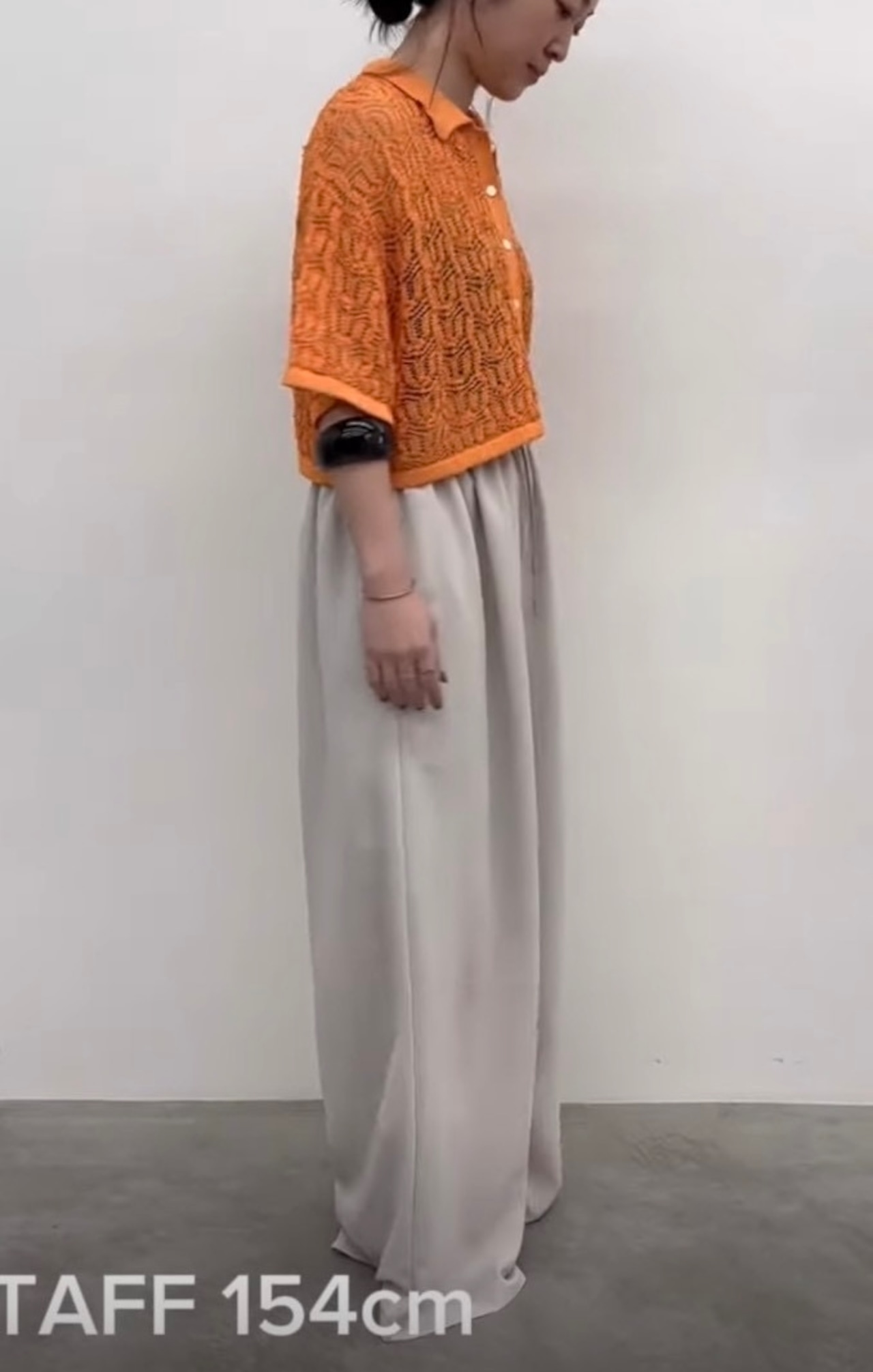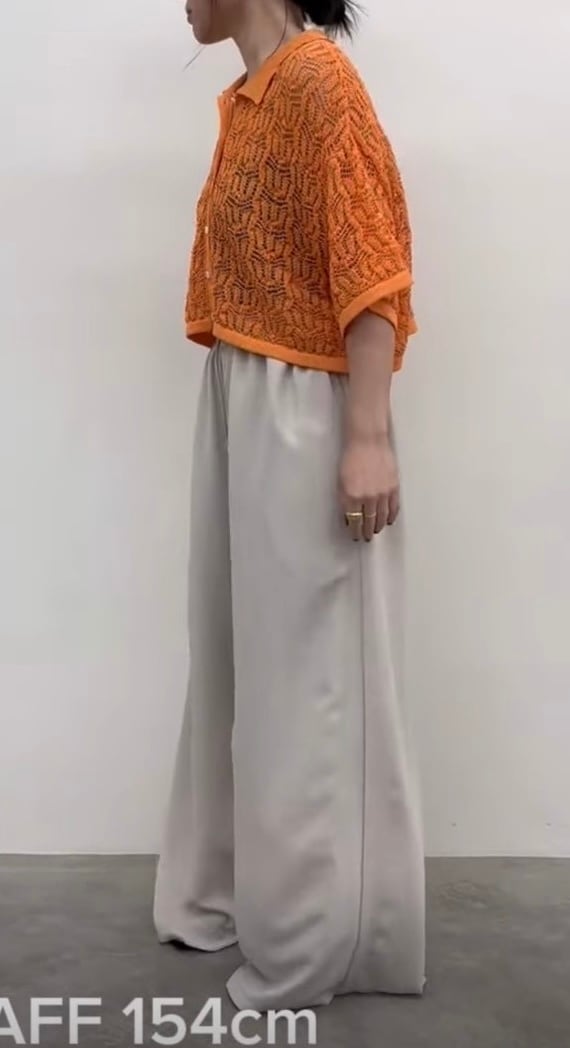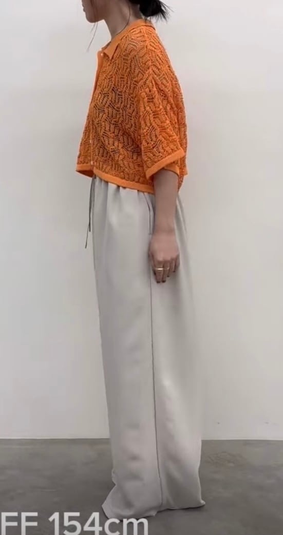 ゆったりとした身幅と短い着丈でタックパンツやフレアスカートを合わせるとバランスよく着こなしていただけます。