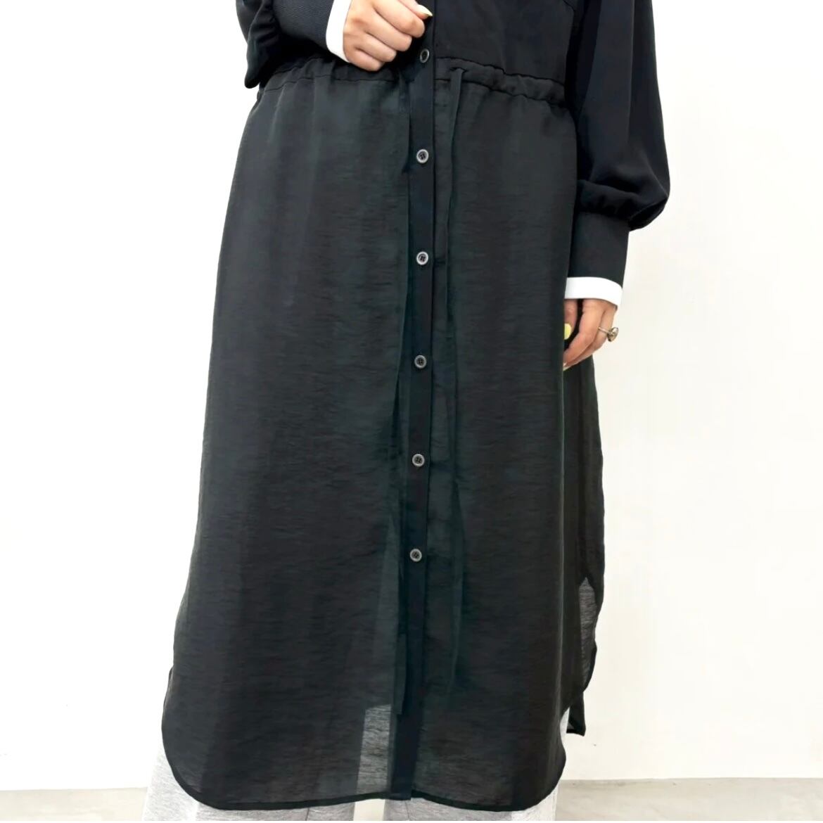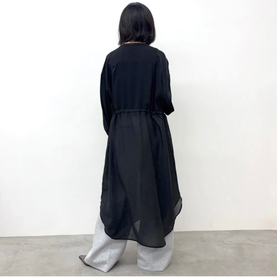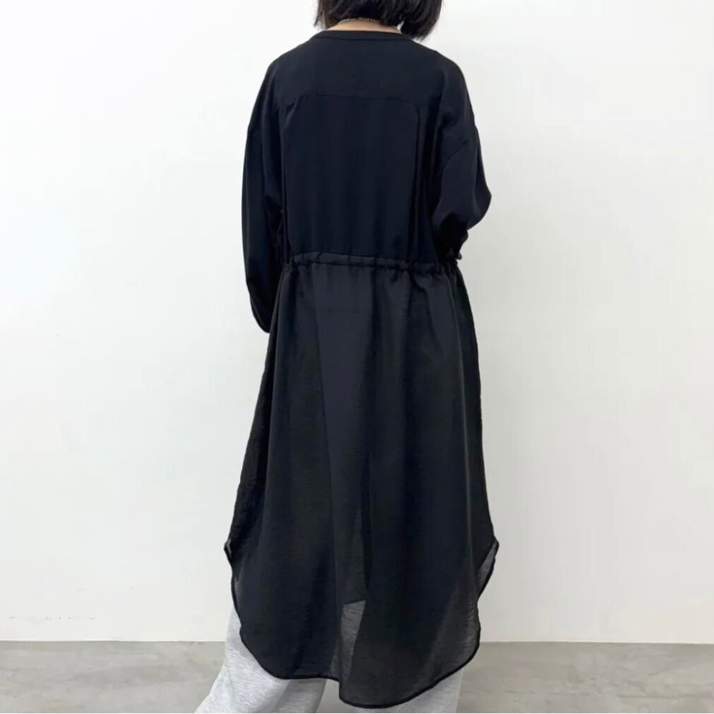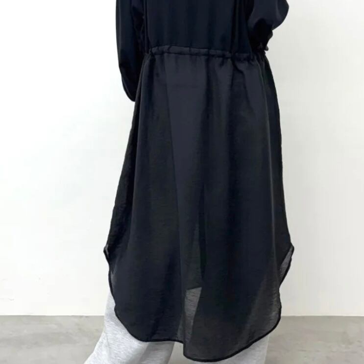 上半身は透け感がなく腰から下はシアー素材をあわせた軽やかで清涼感のあるデザイン。