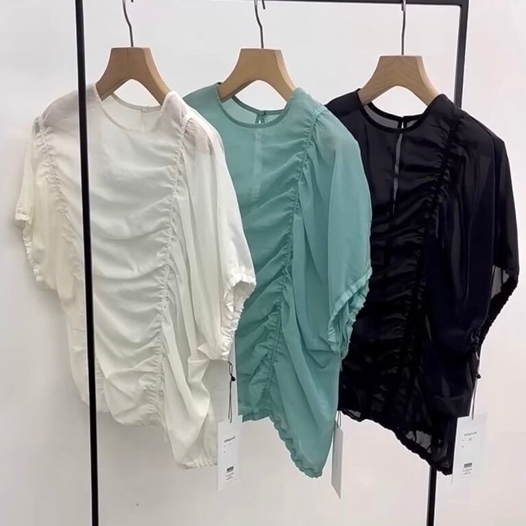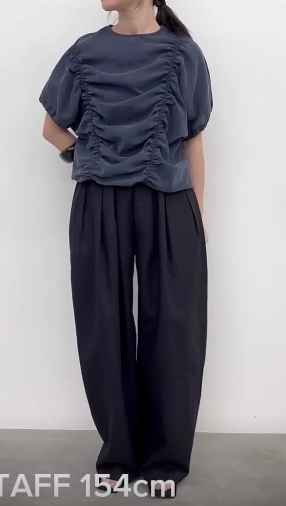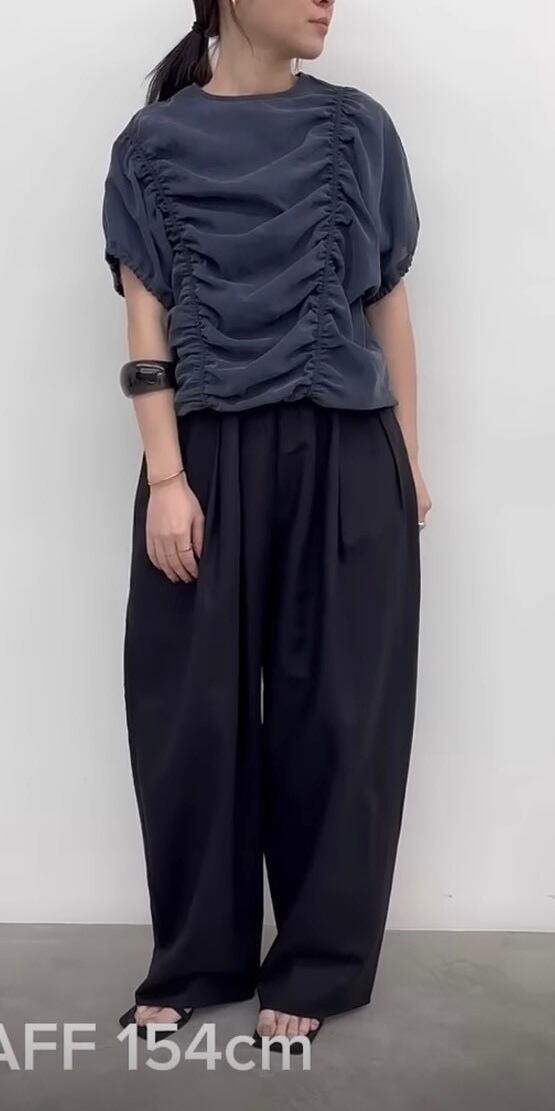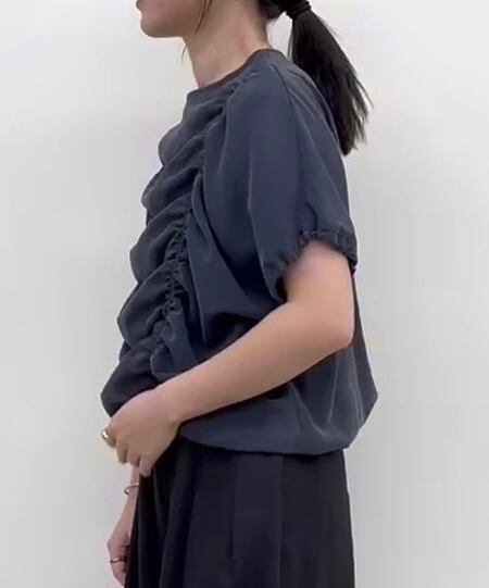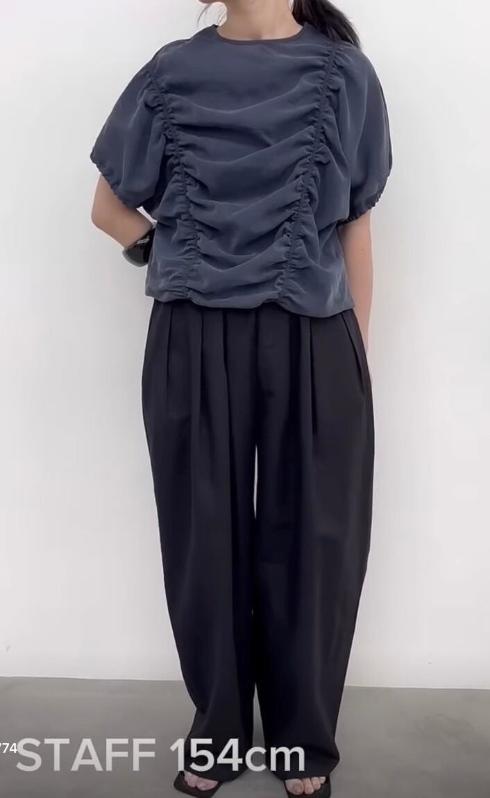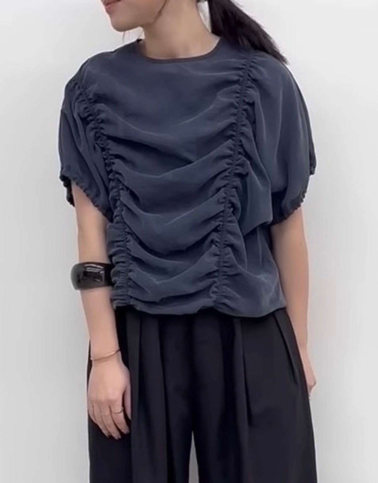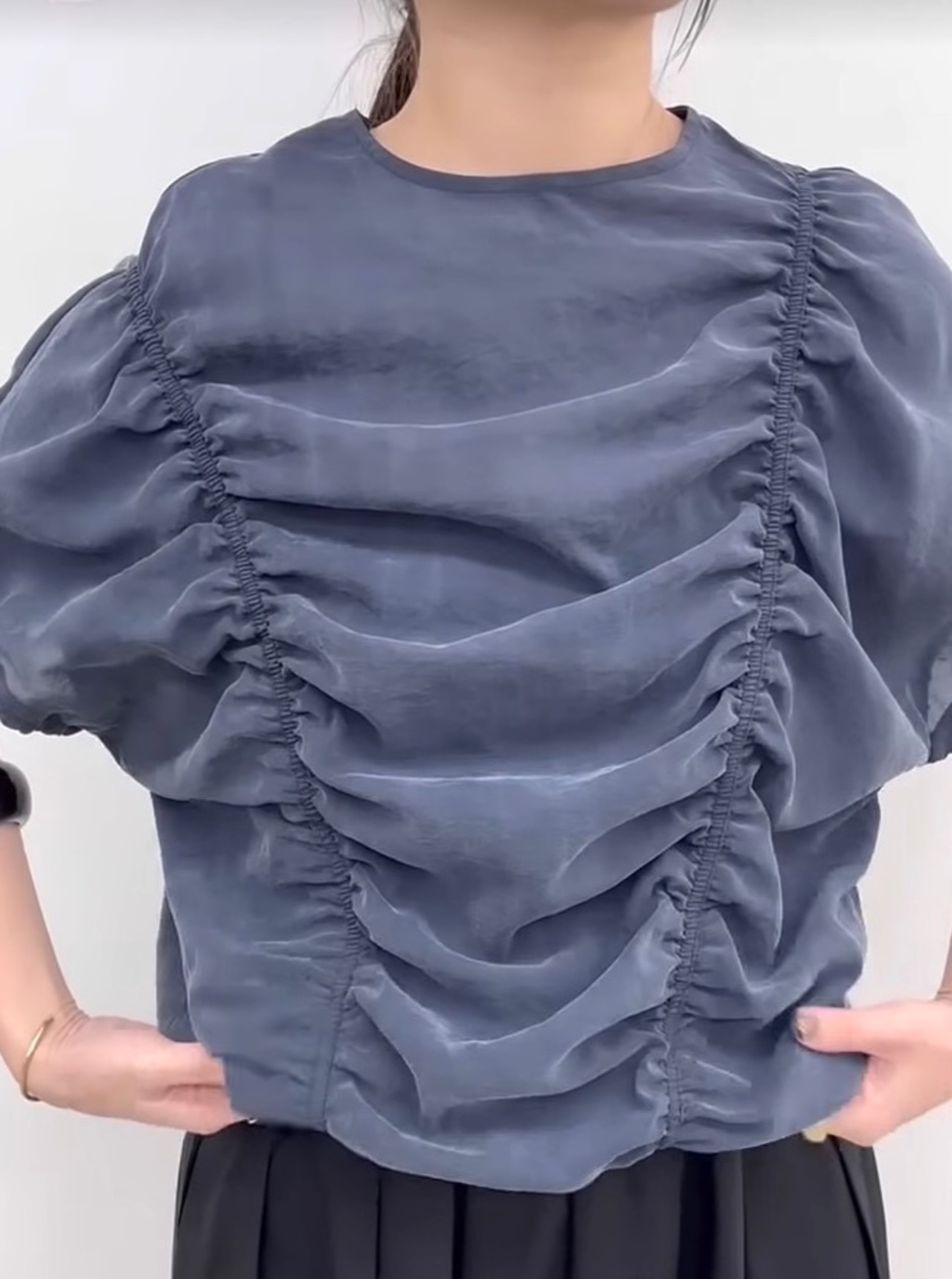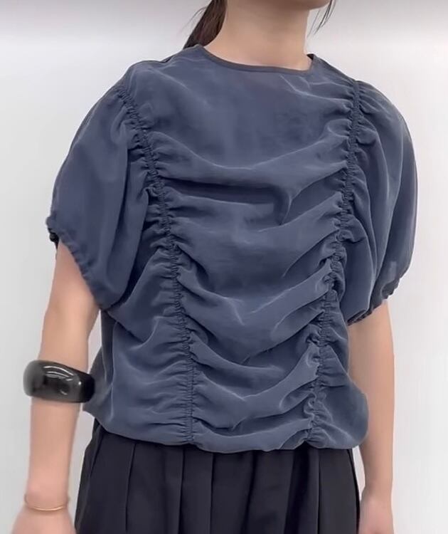くしゅくしゅとした立体感がコーディネートの主役になるブラウス。