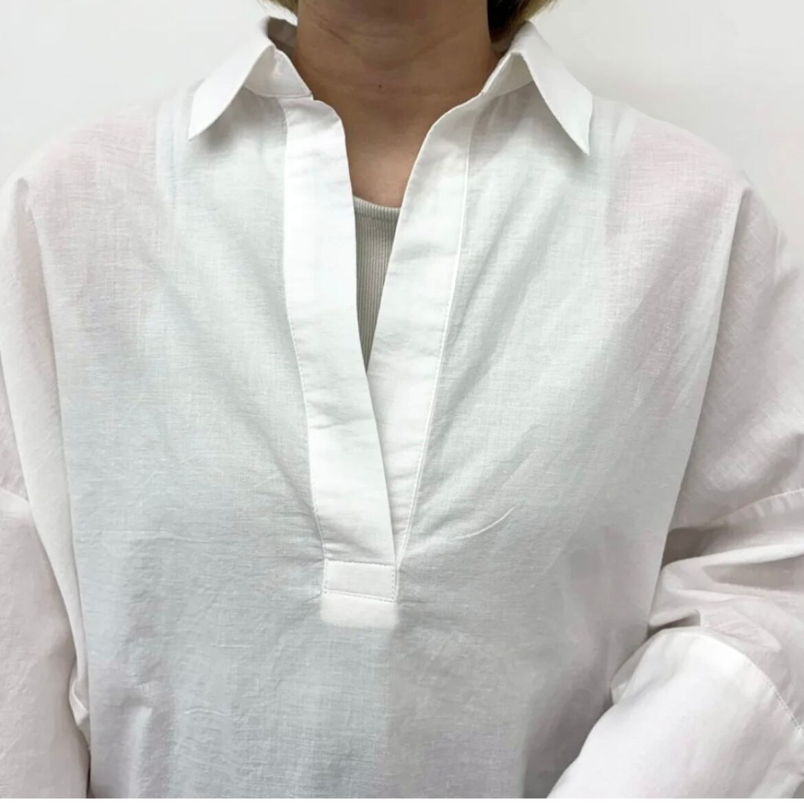 ゆったりとしたシルエットで女性らしさを演出するスキッパーシャツ。